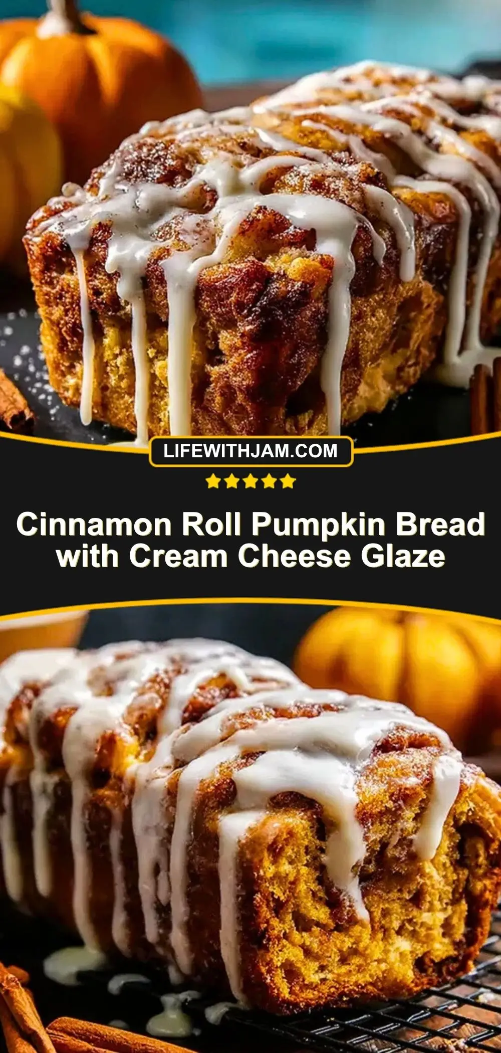 Cinnamon Roll Pumpkin Bread with Cream Cheese Glaze