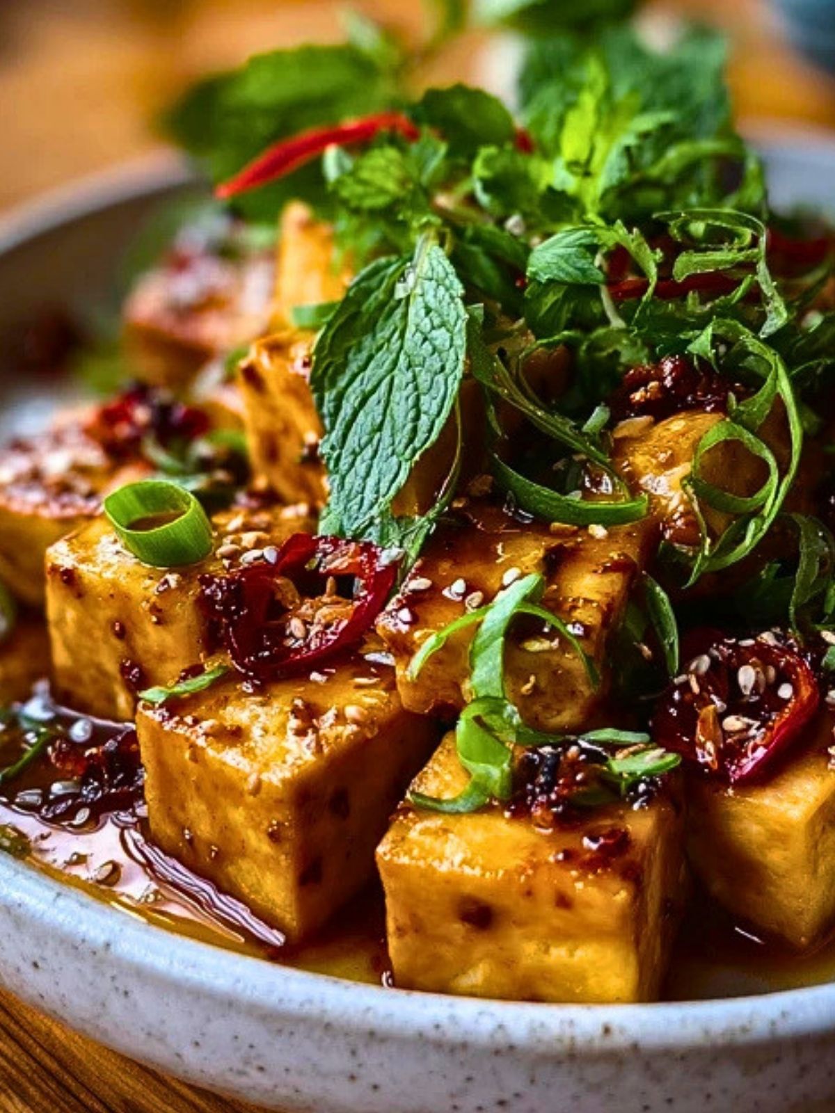 The magic comes from the balance—savory soy, subtle sweetness, garlic warmth, and a gentle kick from chili. Combined with crispy tofu and fresh herbs, every bite hits multiple flavor notes that keep you coming back for more.