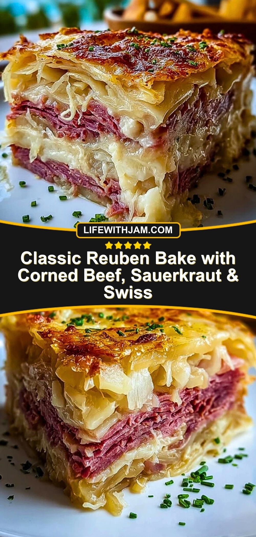 If you’re craving the bold, savory flavors of a classic deli sandwich baked into a cozy casserole, this Classic Reuben Bake with Corned Beef, Sauerkraut & Swiss is about to become your new go-to comfort dish. It takes everything you love about a Reuben sandwich — the tangy sauerkraut, hearty corned beef, melty Swiss cheese, and thousand island — and layers it between tender sheets of dough for an easy oven-baked masterpiece.
