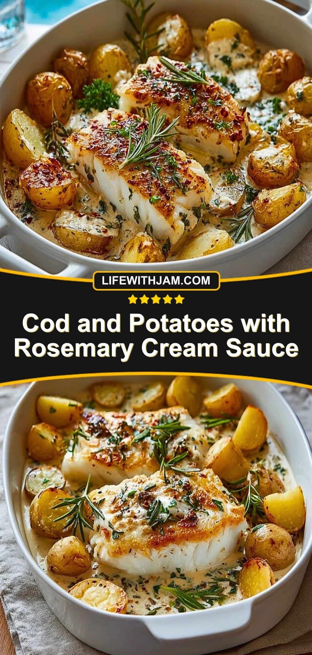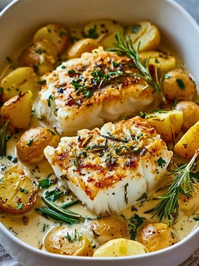 Tender, flaky cod nestled among buttery baby potatoes in a silky rosemary cream sauce—this dish is comfort food elevated to a whole new level. Each bite carries the warmth of rosemary and garlic, the richness of cream, and the delicate texture of perfectly seared cod. It’s the kind of meal that feels special yet remains refreshingly simple to prepare.