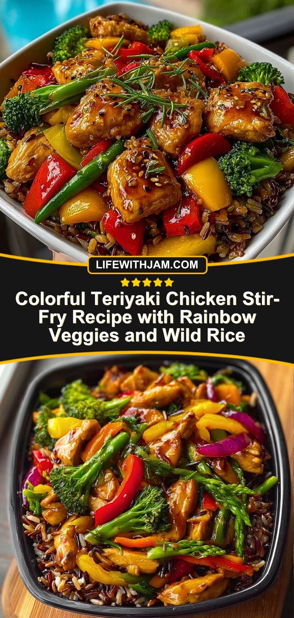 Colorful Teriyaki Chicken Stir-Fry Recipe with Rainbow Veggies and Wild Rice