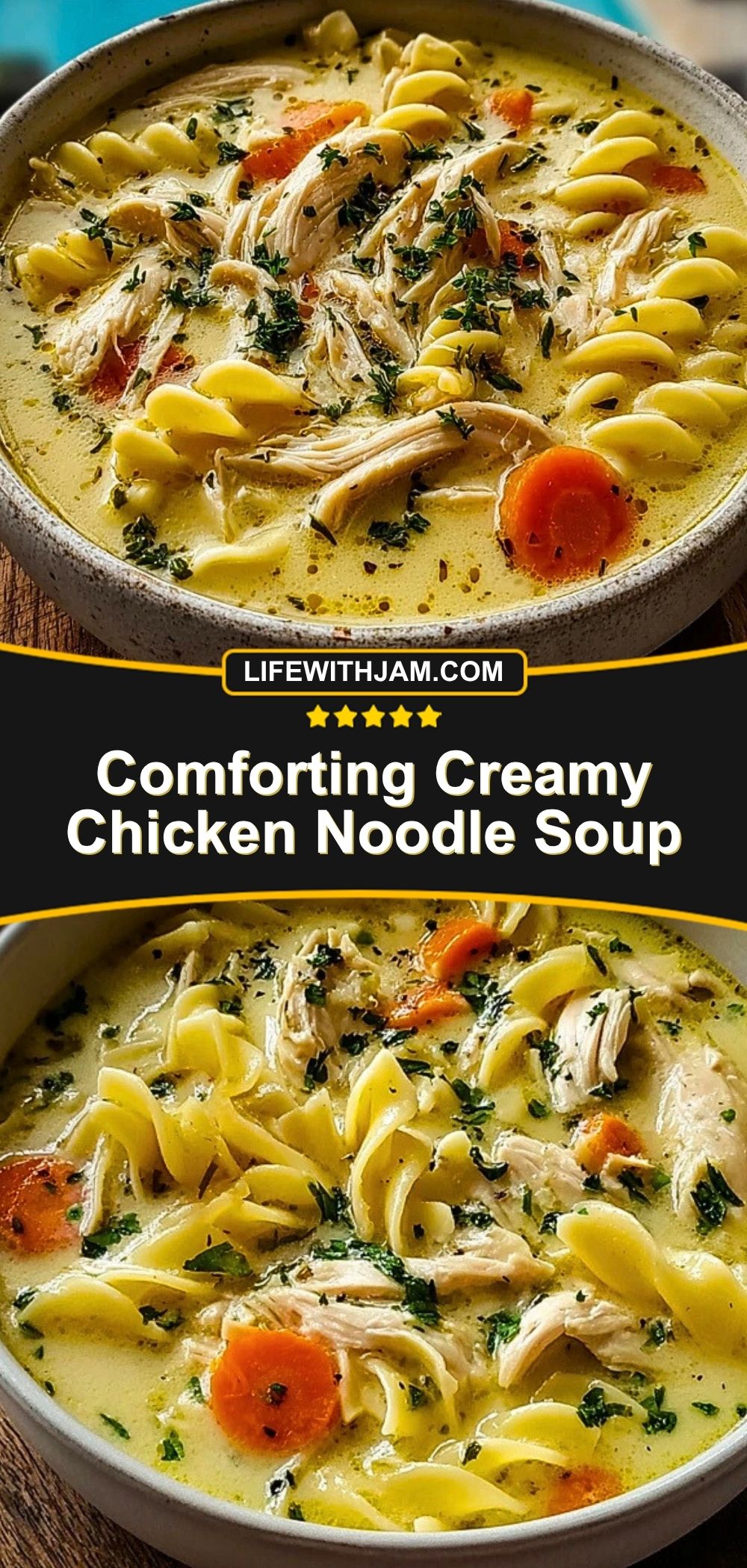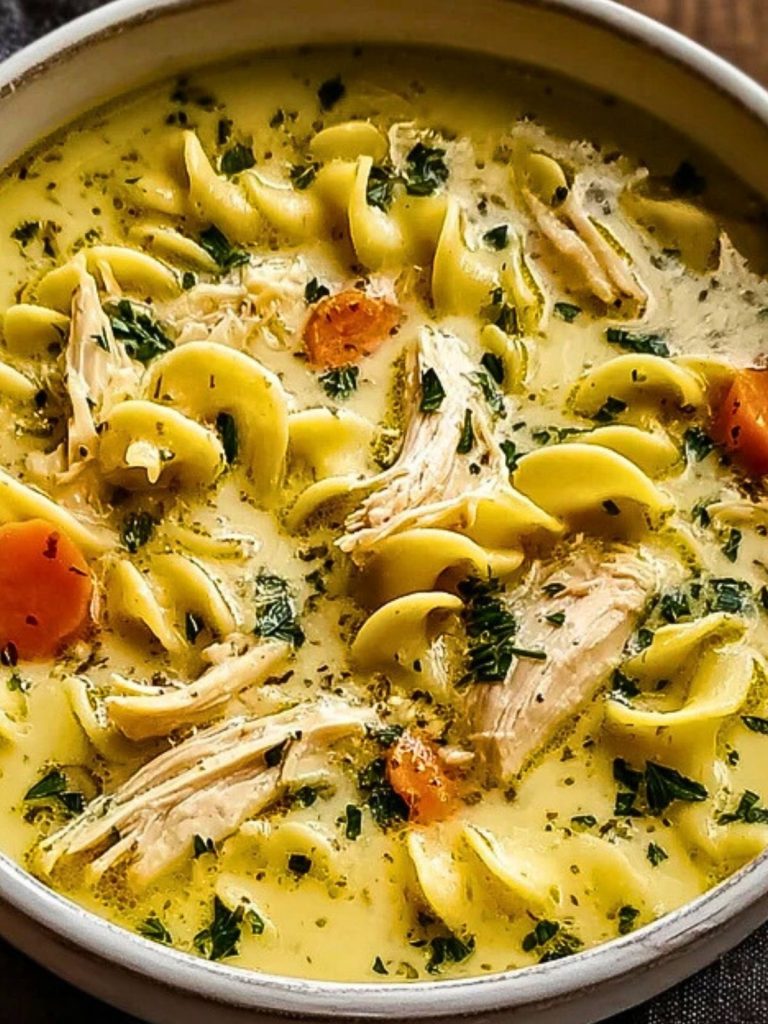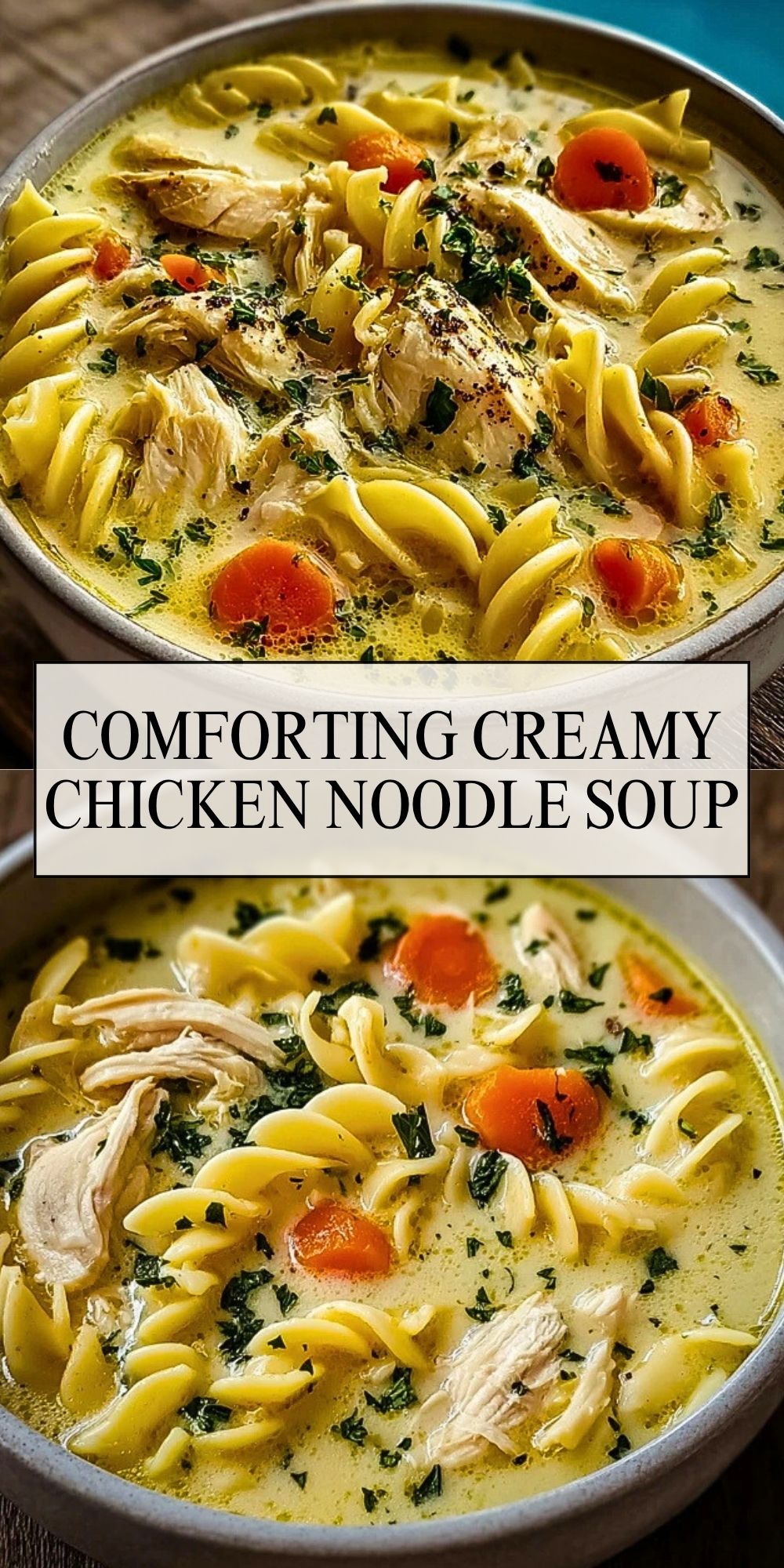 A cozy, creamy twist on the classic chicken noodle soup—perfect for chilly evenings, sick days, or when you need something soothing. This one-pot wonder is loaded with shredded chicken, egg noodles, and vegetables in a rich, silky broth.