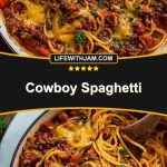 Cowboy Spaghetti is best served hot and fresh, topped with extra cheddar and green onions for maximum flavor and color. It pairs beautifully with cornbread, garlic toast, or even a crisp green salad if you want to balance the richness.