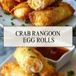 Crab Rangoon Egg Rolls are best served hot and crispy straight from the fryer. Arrange them on a platter with small bowls of sweet chili sauce, soy sauce, or your favorite Asian-inspired dips for a party-perfect presentation. These also pair beautifully with a light cucumber salad or sesame slaw for a complete appetizer plate.