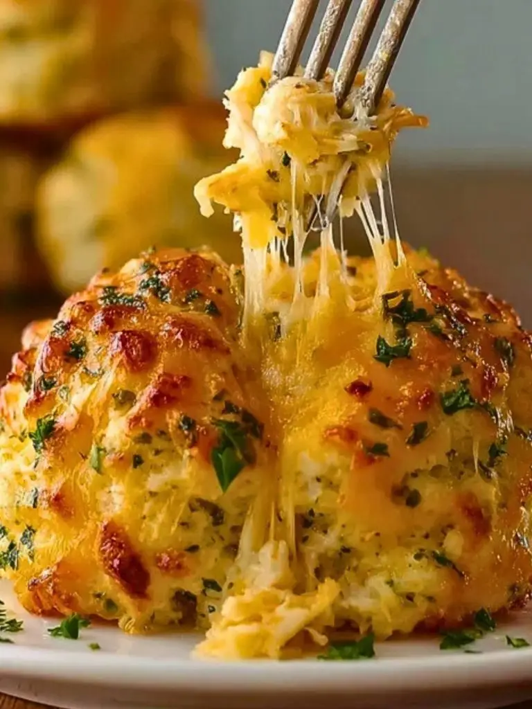 Place the stuffed biscuits on a parchment-lined baking sheet. Brush the tops with melted butter and sprinkle with extra cheddar and parsley. Bake at 400°F (200°C) for 18-22 minutes, or until golden brown and bubbling.