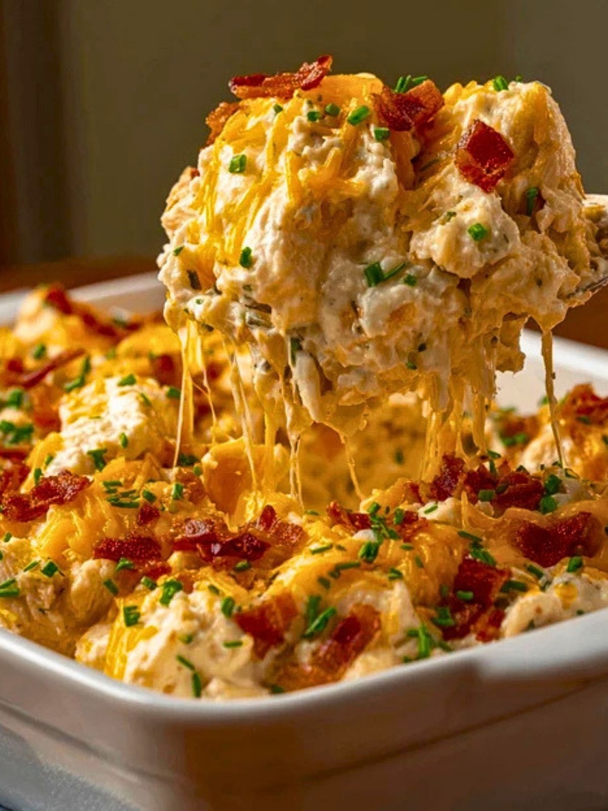 This casserole has become a favorite because it uses simple ingredients and turns them into something that tastes like pure comfort food. The creamy base keeps the chicken moist, the bacon adds smoky crunch, and the cheddar melts into every layer for a dinner that feels hearty and filling without being complicated.