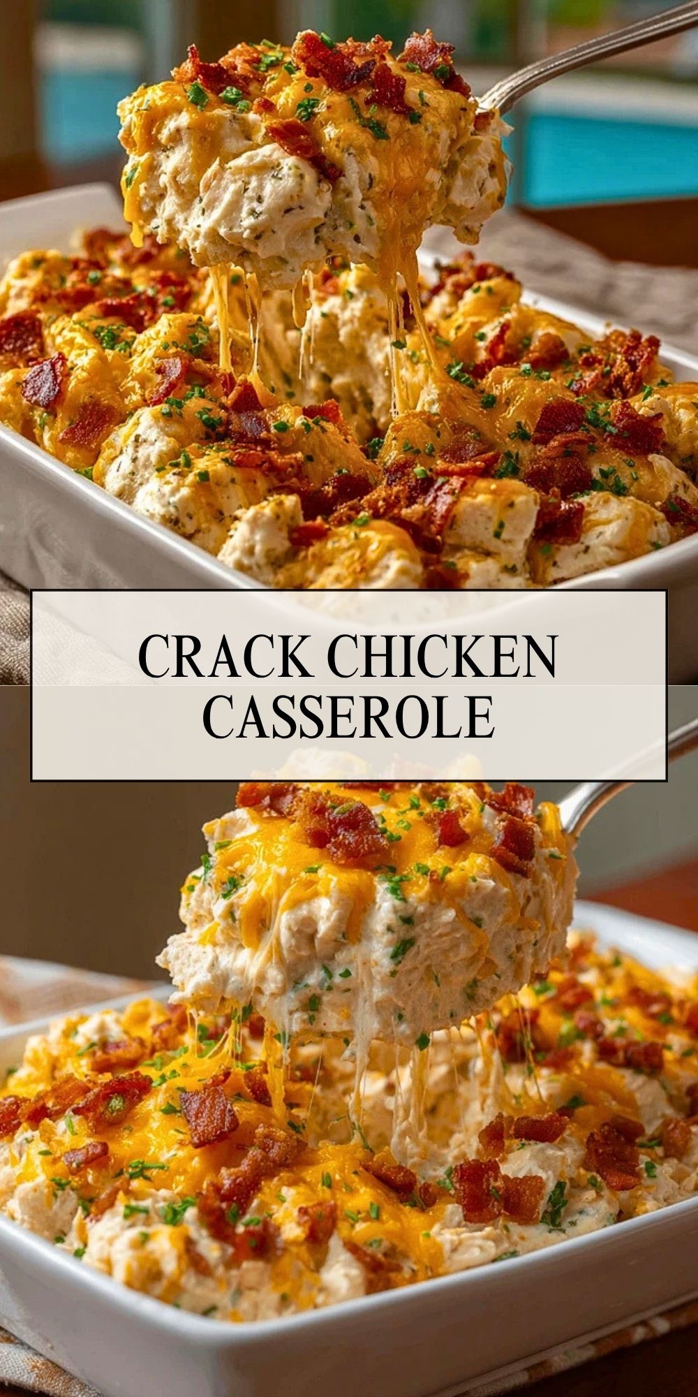 Crack Chicken Casserole is a creamy, cheesy, bacon-loaded easy dinner that is perfect for busy weeknights, cozy family meals, and make-ahead comfort food. This easy recipe combines tender shredded chicken, ranch seasoning, cream cheese, sour cream, and melty cheddar for one of those dinner ideas everyone wants seconds of. It is rich, hearty, and packed with flavor, making it a great choice for easy dinner nights, food ideas for gatherings, and simple comfort food cravings.