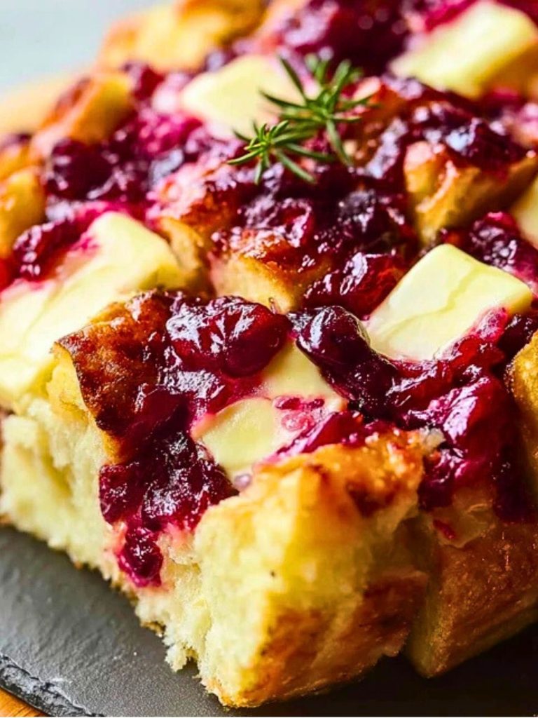 You can prep the bread a few hours ahead—slice it, add the cheese and cranberry, then cover and refrigerate. Drizzle with butter and bake just before serving.