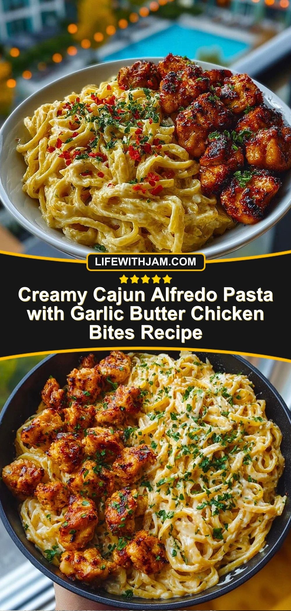 Creamy Cajun Alfredo Pasta with Garlic Butter Chicken Bites