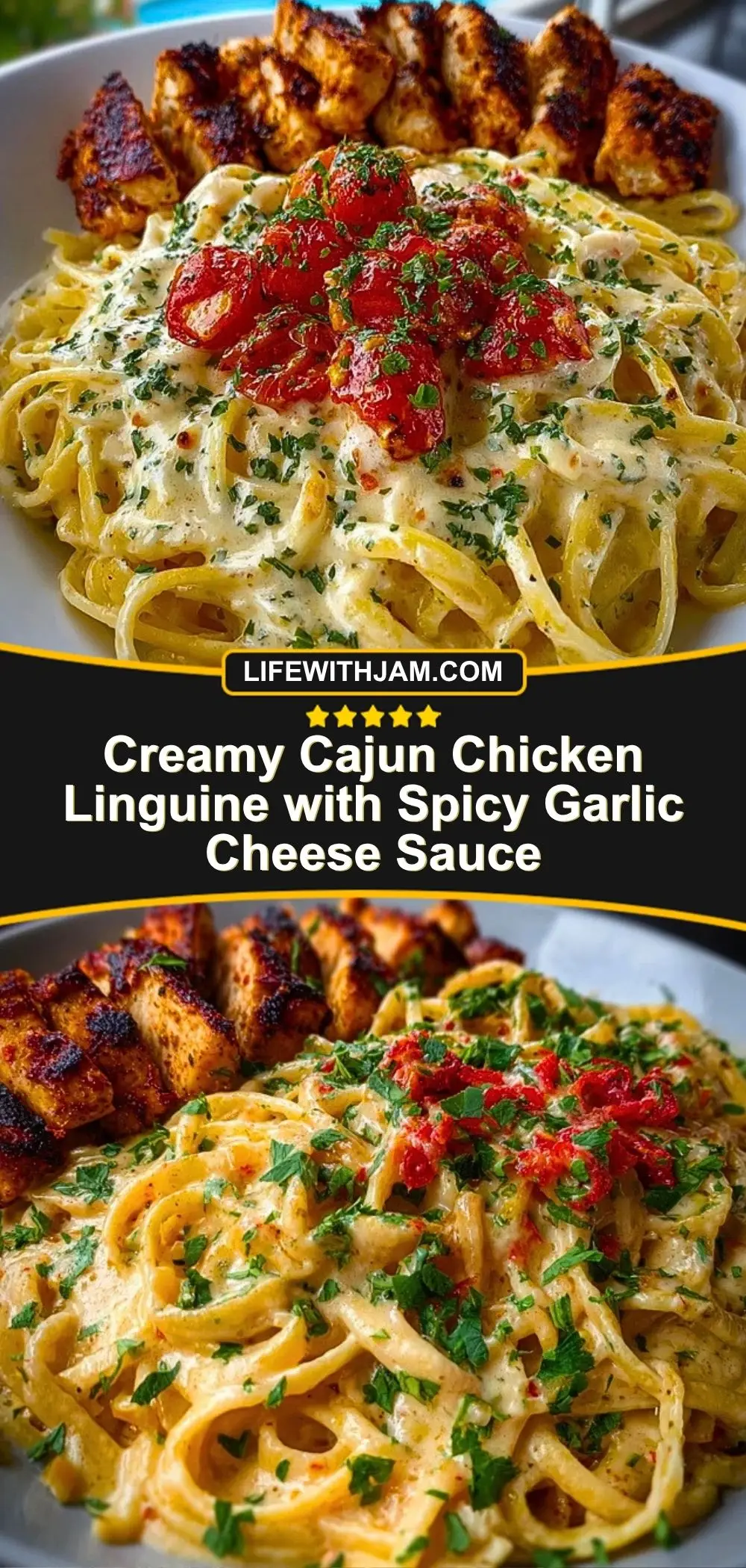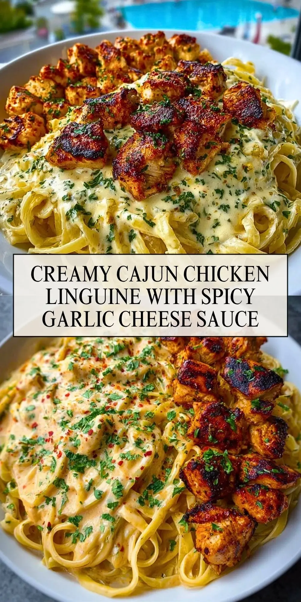 Keywords: Cajun chicken pasta, creamy linguine, garlic cheese sauce
