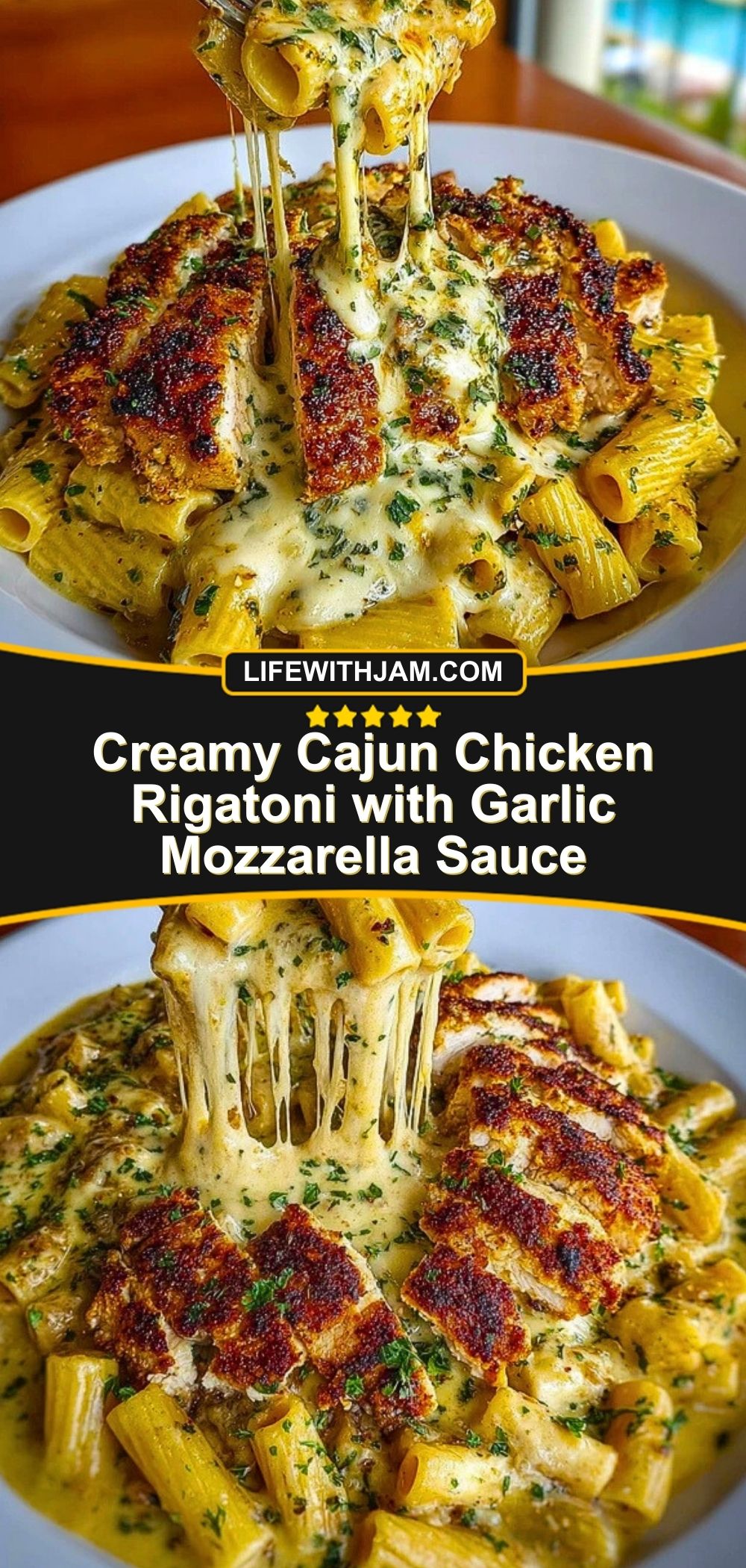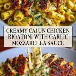 Creamy Cajun Chicken Rigatoni with Garlic Mozzarella Sauce is a rich and savory pasta dinner featuring spicy Cajun-seared chicken over tender rigatoni coated in a velvety mozzarella cream sauce infused with garlic. It’s the perfect balance of bold heat and creamy comfort.