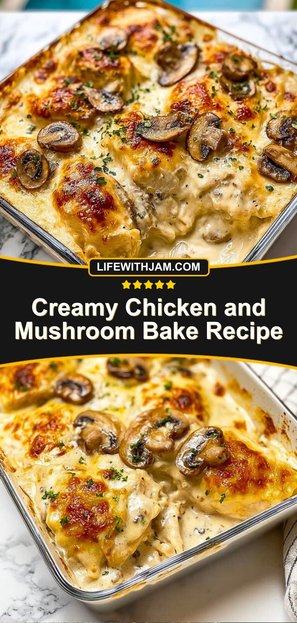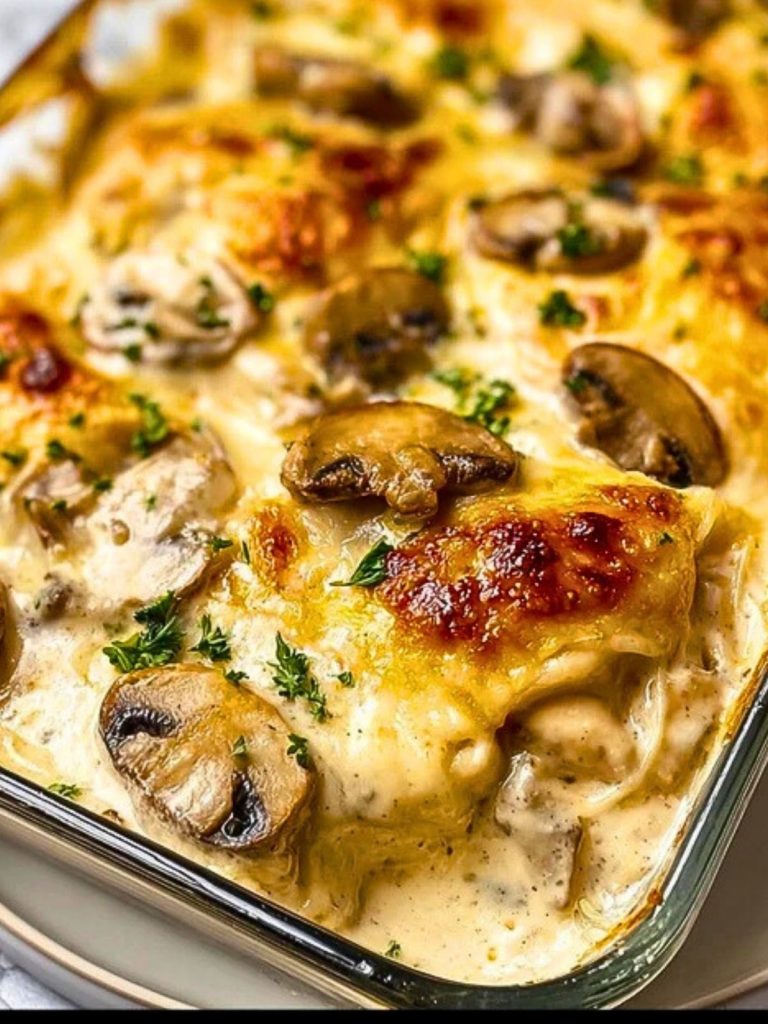 This Creamy Chicken and Mushroom Bake is a comforting one-dish dinner with juicy chicken nestled in a rich garlic-Parmesan sauce. Perfect for cozy evenings, it pairs beautifully with mashed potatoes, pasta, or vegetables.
