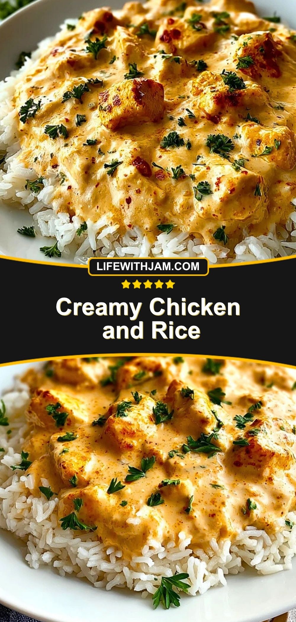 There’s something undeniably comforting about a big, warm plate of creamy chicken and rice. The tender chicken chunks bathed in a rich, velvety sauce melt right into the fluffy white rice underneath. Whether it’s a chilly night or you’re craving a nostalgic classic, this dish is soul food at its finest.