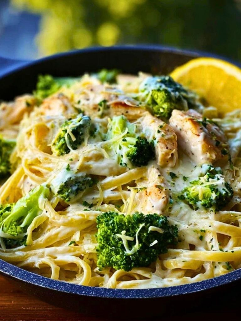 A cozy, creamy pasta dish loaded with seared chicken, fresh broccoli, and fettuccine tossed in a rich homemade Alfredo sauce. Perfect for weeknight dinners or impressing guests, with leftovers that reheat like a dream.