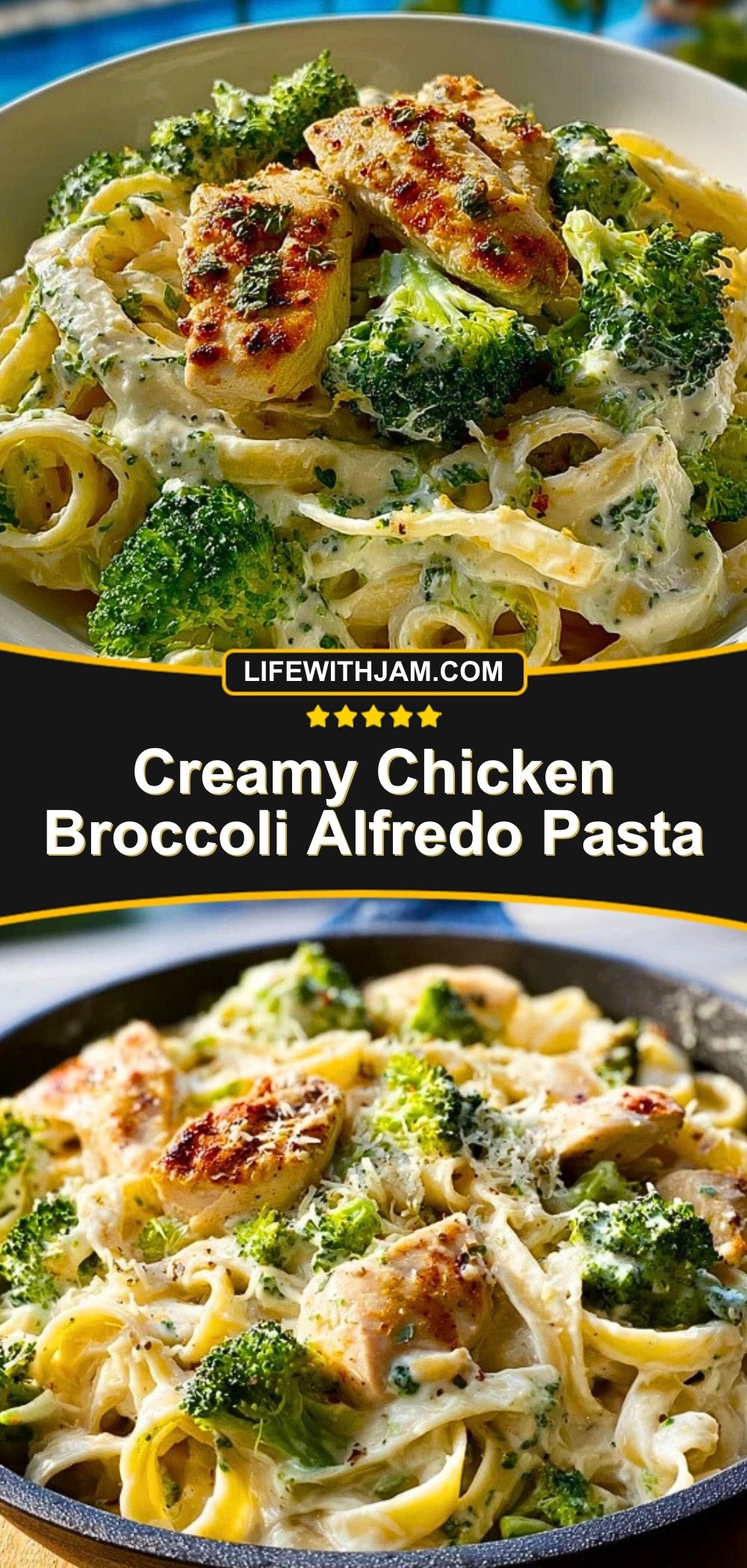 Creamy Chicken Broccoli Alfredo Pasta is best enjoyed immediately while the sauce is silky and warm. Serve it with a side of crusty garlic bread or a light green salad to round out the richness. It also pairs beautifully with a glass of chilled white wine if you’re feeling fancy.