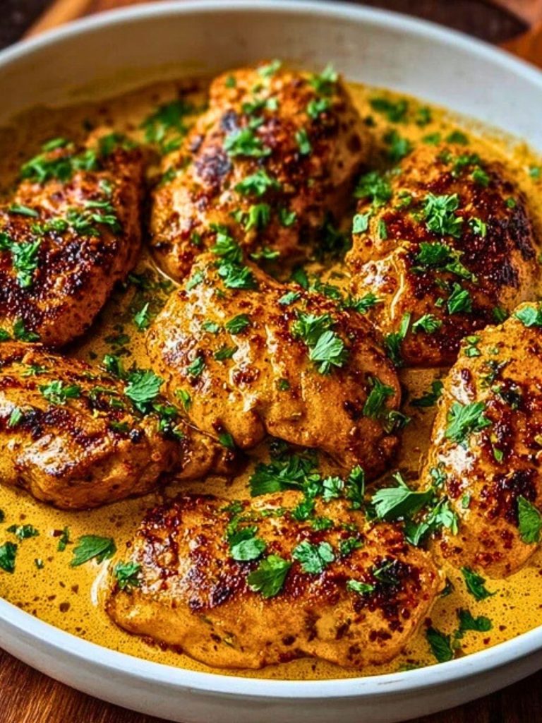 Add the seared chicken thighs back into the skillet, spooning sauce over the top. Simmer for another 3–5 minutes so the chicken absorbs the flavor.