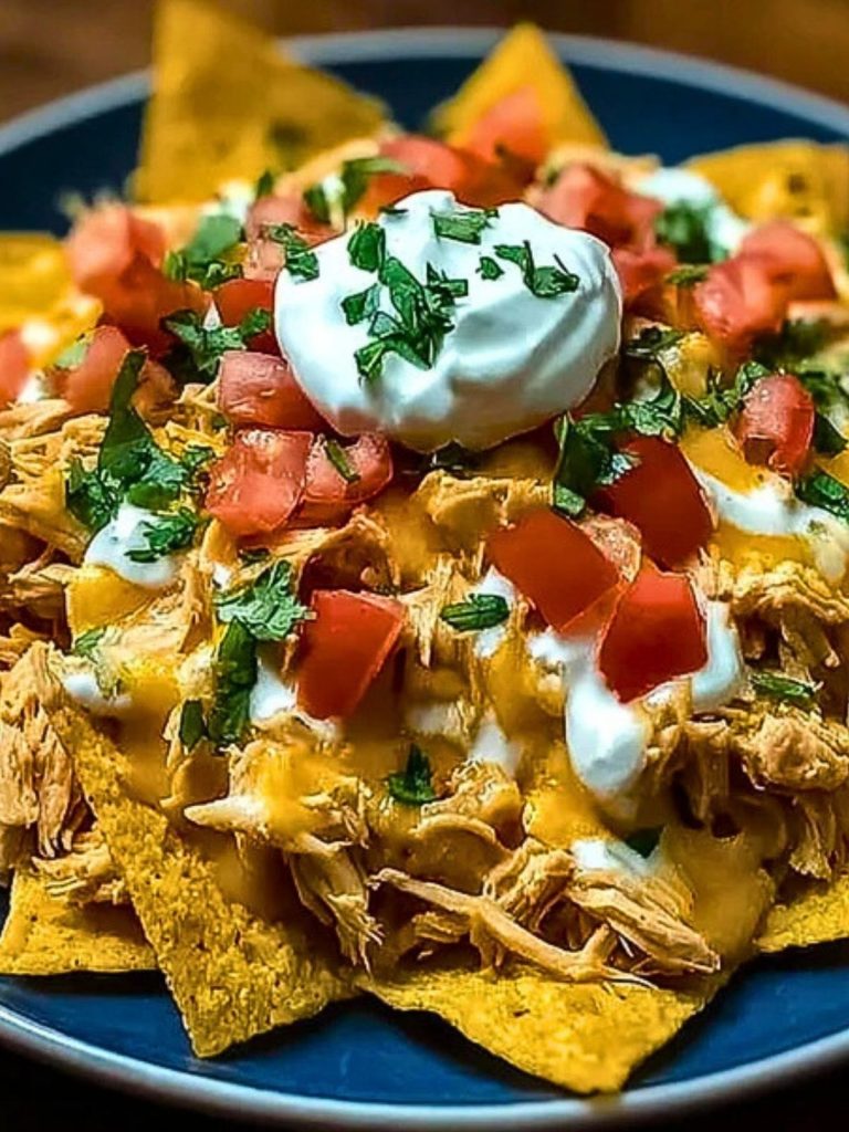 Whether you’re hosting game night, a casual hangout, or just need a fun dinner that everyone will devour, these nachos bring flavor and simplicity to the table. It starts with juicy chicken breasts slow-cooked in seasoned cream cheese, then layered with shredded cheddar, crisp veggies, and a drizzle of sour cream or ranch. One bite, and you’re hooked.
