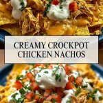 Need a party snack that delivers creamy, cheesy comfort with hardly any effort? Creamy Crockpot Chicken Nachos are your answer. This recipe is everything you love about nachos: tender pulled chicken, melted cheese, fresh toppings, and a creamy kick—all piled high on crunchy tortilla chips. And the best part? The slow cooker does most of the work for you.