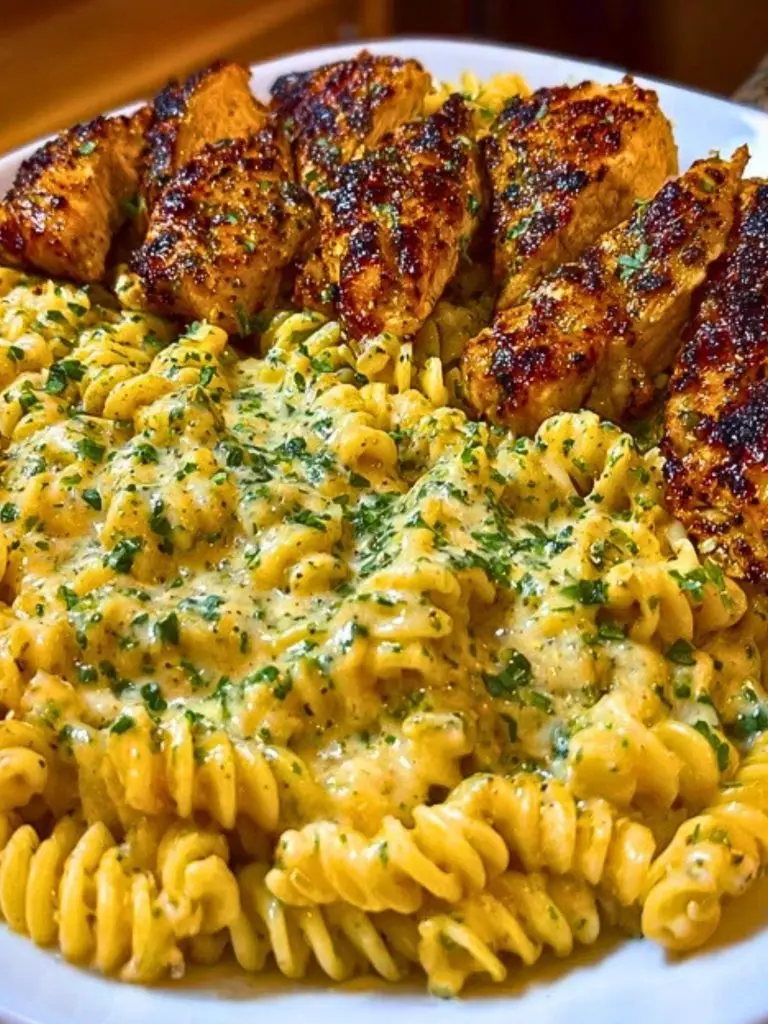 Creamy Garlic Butter Chicken and Rotini in Parmesan Sauce is the ultimate comfort meal—juicy, golden-seared chicken paired with perfectly cooked rotini tossed in a velvety Parmesan cream sauce. Ready in under 40 minutes, it’s perfect for weeknight dinners yet elegant enough for special occasions.