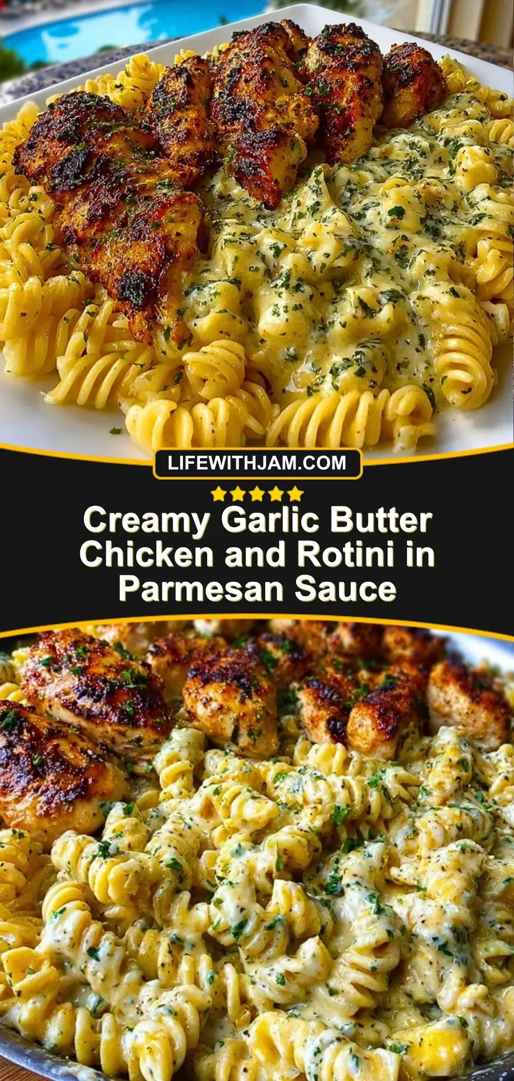 Keywords: garlic butter chicken pasta, creamy Parmesan rotini