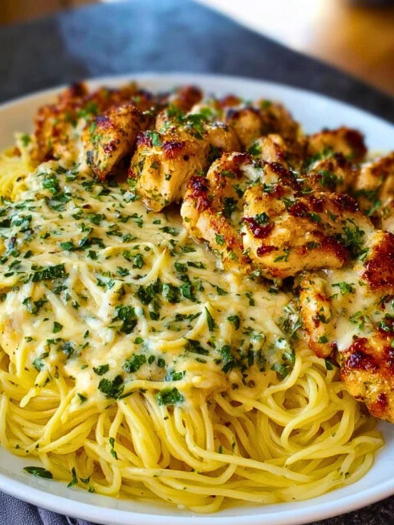 Each bite delivers the best of both worlds: tender chicken that’s pan-seared until caramelized and flavorful, and spaghetti tossed in a cheesy, garlicky cream sauce that wraps around your fork like a hug. It’s easy to see why this recipe becomes a favorite after just one try.
