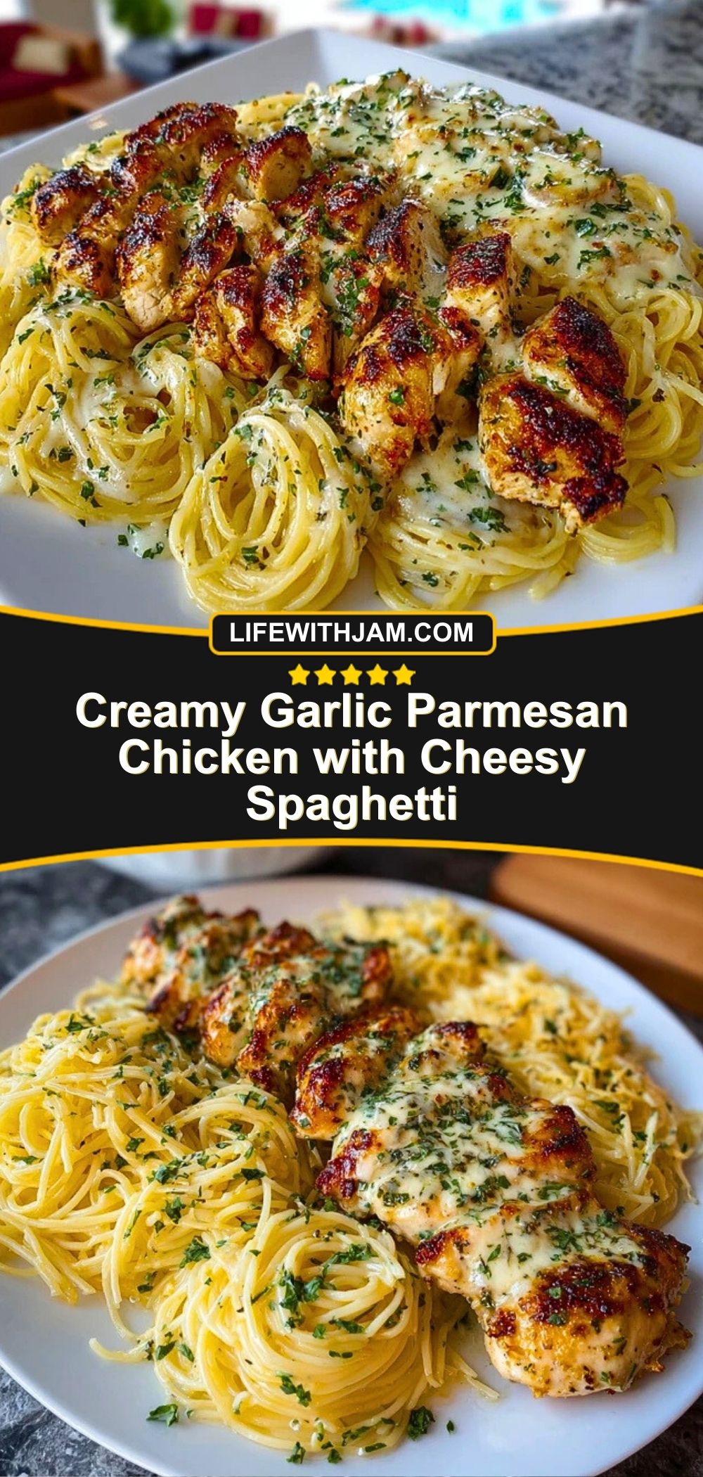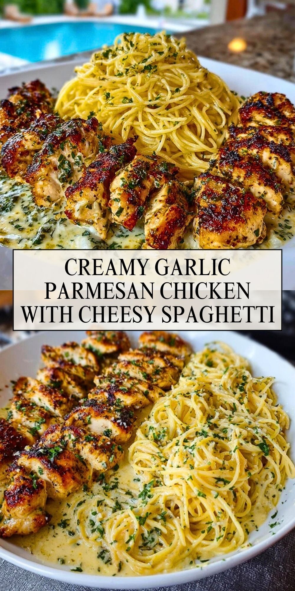 Creamy Garlic Parmesan Chicken with Cheesy Spaghetti