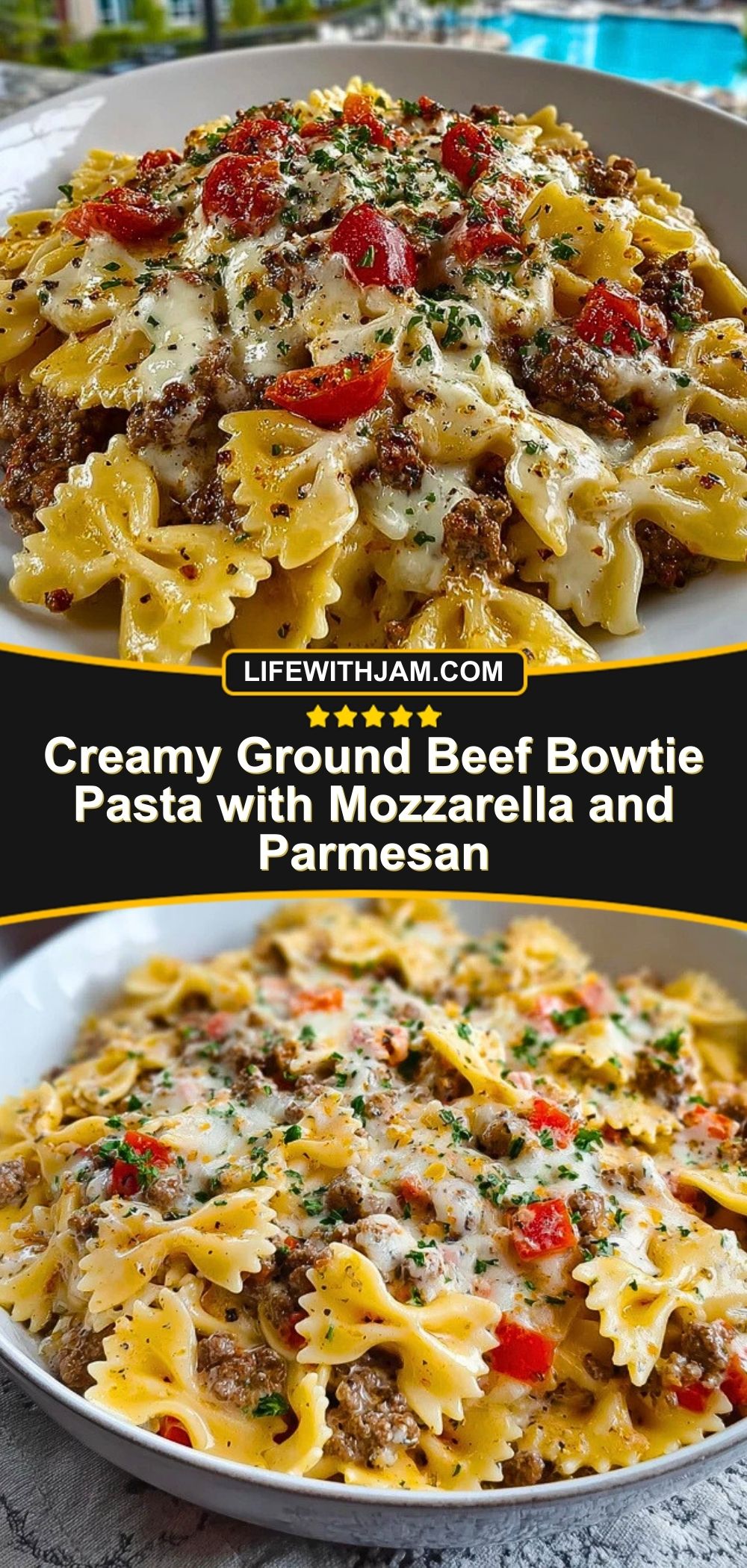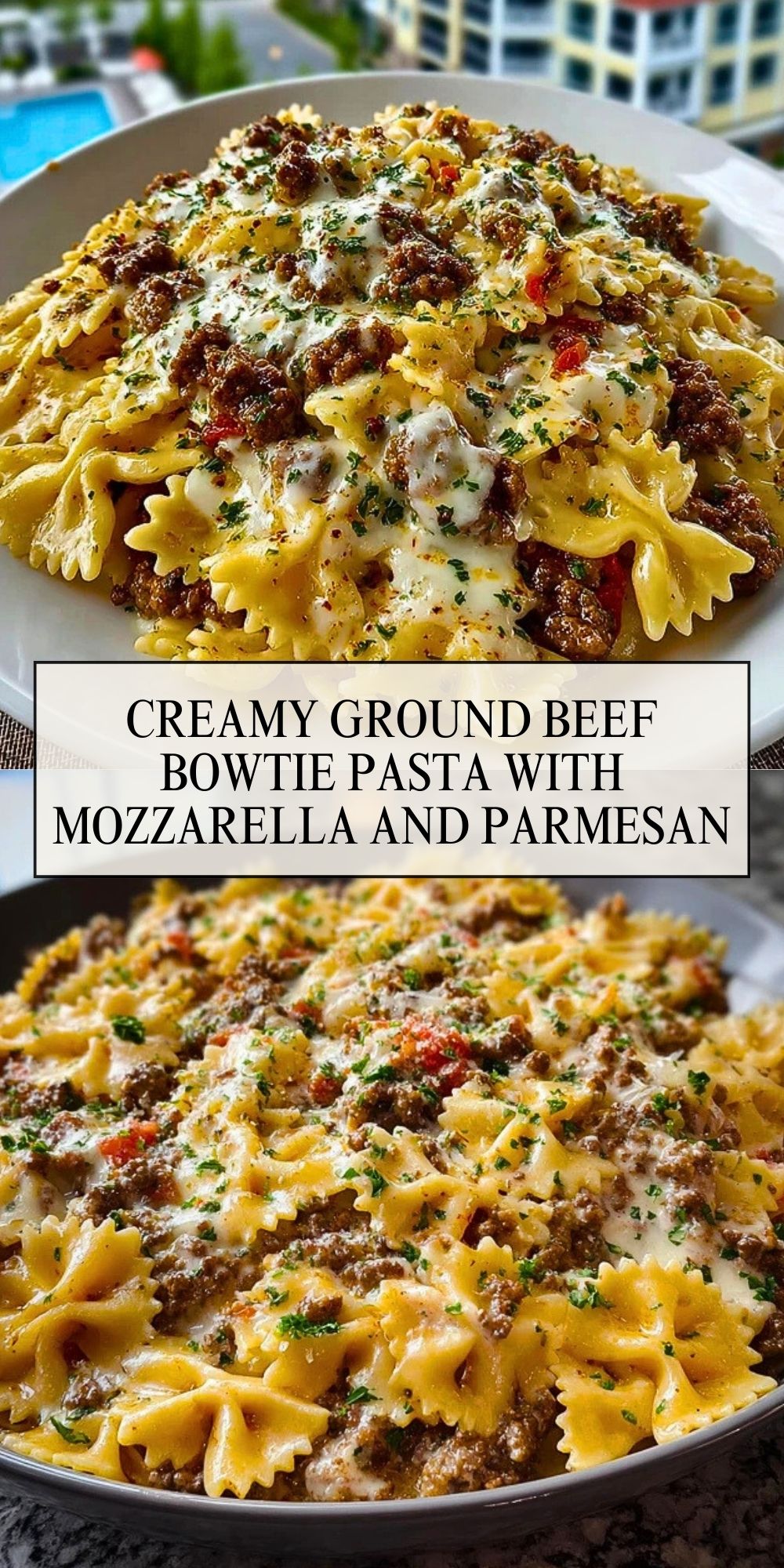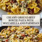 Creamy Ground Beef Bowtie Pasta with Mozzarella and Parmesan