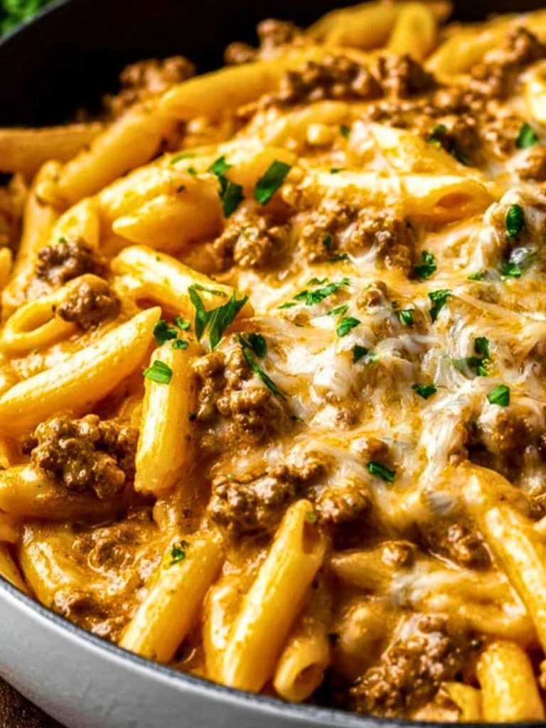 This Creamy High Protein Beef Pasta is a one-pan wonder filled with tender pasta, rich tomato-beef flavor, and a silky, protein-packed sauce made with Greek yogurt or cottage cheese. Cheesy, hearty, and ready in under 30 minutes—it’s a perfect weeknight dinner for families or meal prep lovers alike.