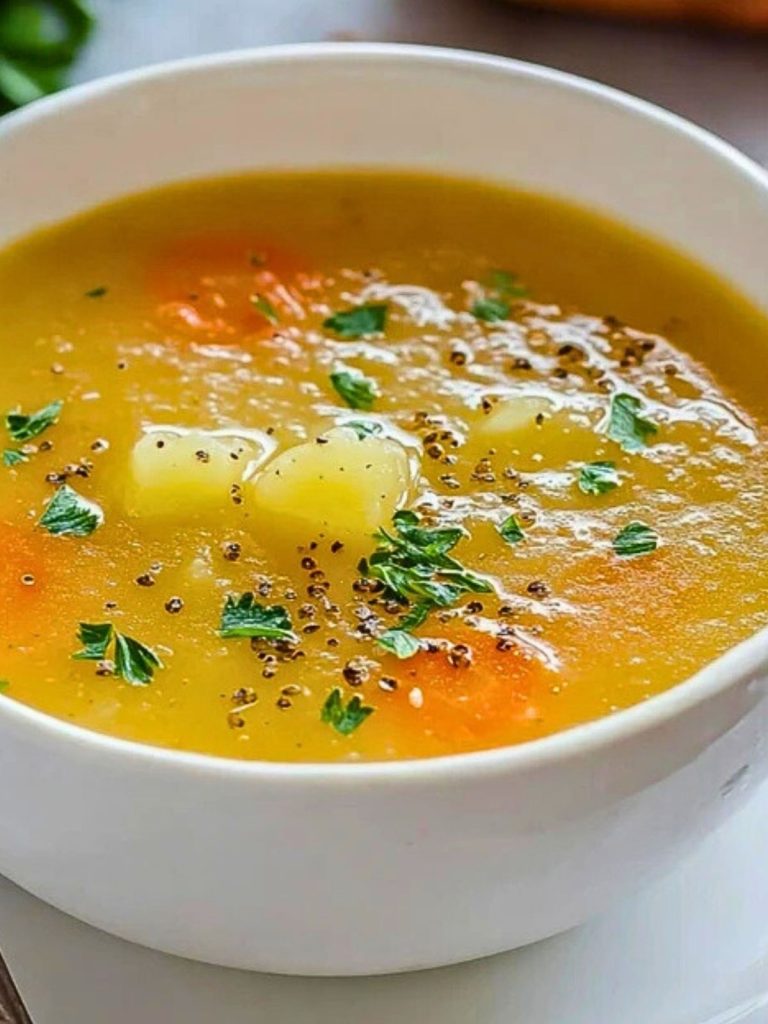 This soup is best served warm with a sprinkle of chopped fresh parsley and a generous crack of black pepper. Pair it with crusty bread, buttery crackers, or a crisp side salad for a balanced and satisfying meal. You can also drizzle a little cream or swirl in coconut milk for extra richness.