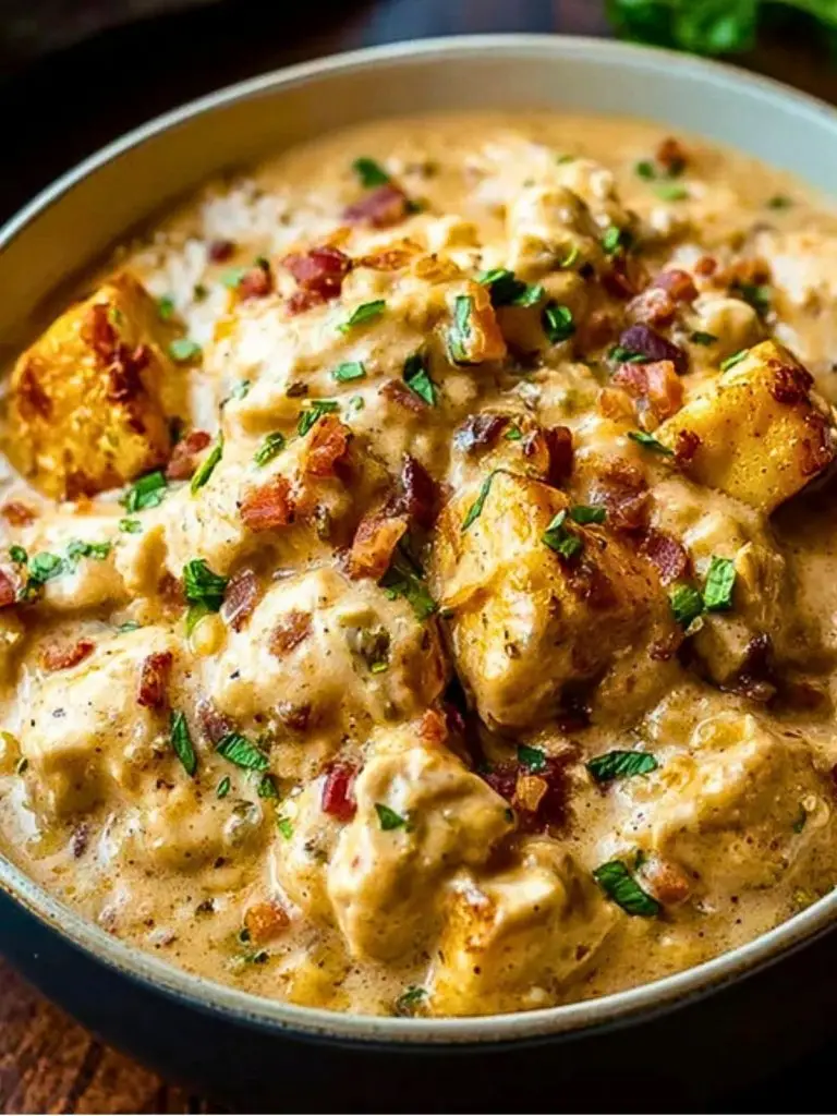 Comfort food doesn’t get easier than this Creamy Ranch Chicken Crock Pot recipe. Tender chunks of chicken slow-cooked in a rich, savory ranch-infused cream sauce, surrounded by golden potatoes and topped with crispy bacon. It’s the kind of hearty meal that makes everyone come back for seconds—and maybe even thirds.