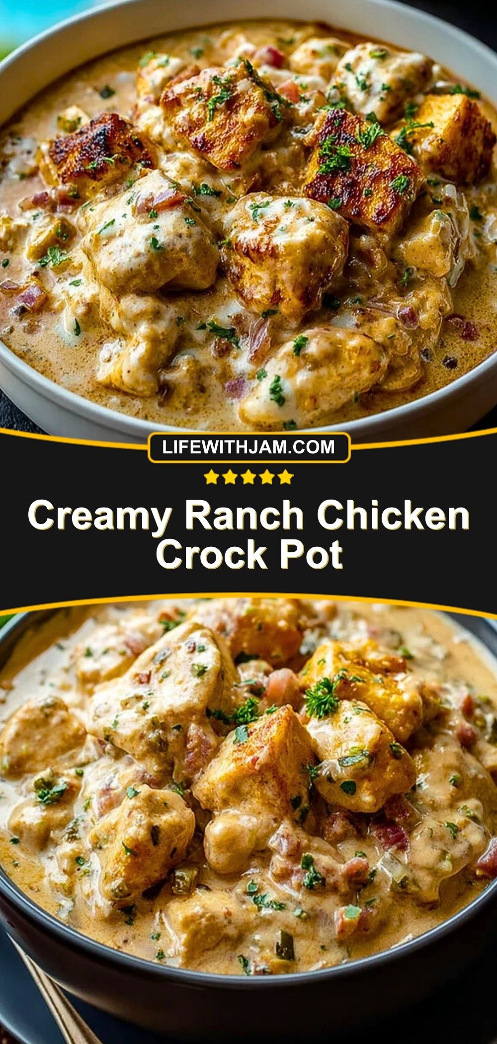 Comfort food doesn’t get easier than this Creamy Ranch Chicken Crock Pot recipe. Tender chunks of chicken slow-cooked in a rich, savory ranch-infused cream sauce, surrounded by golden potatoes and topped with crispy bacon. It’s the kind of hearty meal that makes everyone come back for seconds—and maybe even thirds.