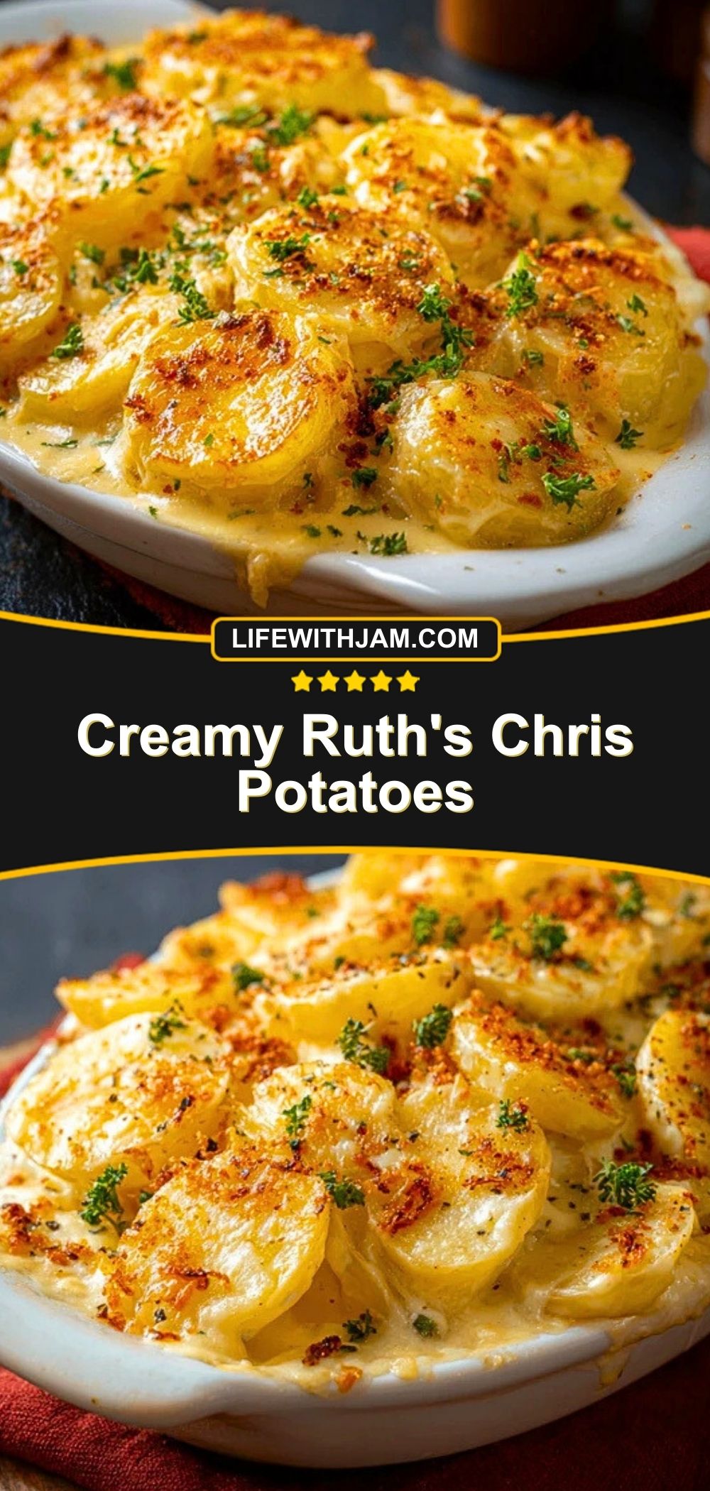 Golden, bubbling, and irresistibly creamy—this copycat version of Ruth’s Chris potatoes delivers all the elegance of a steakhouse side dish right from your own oven. Each forkful of these scalloped potatoes melts in your mouth, smothered in a velvety cheese sauce and baked to golden perfection.