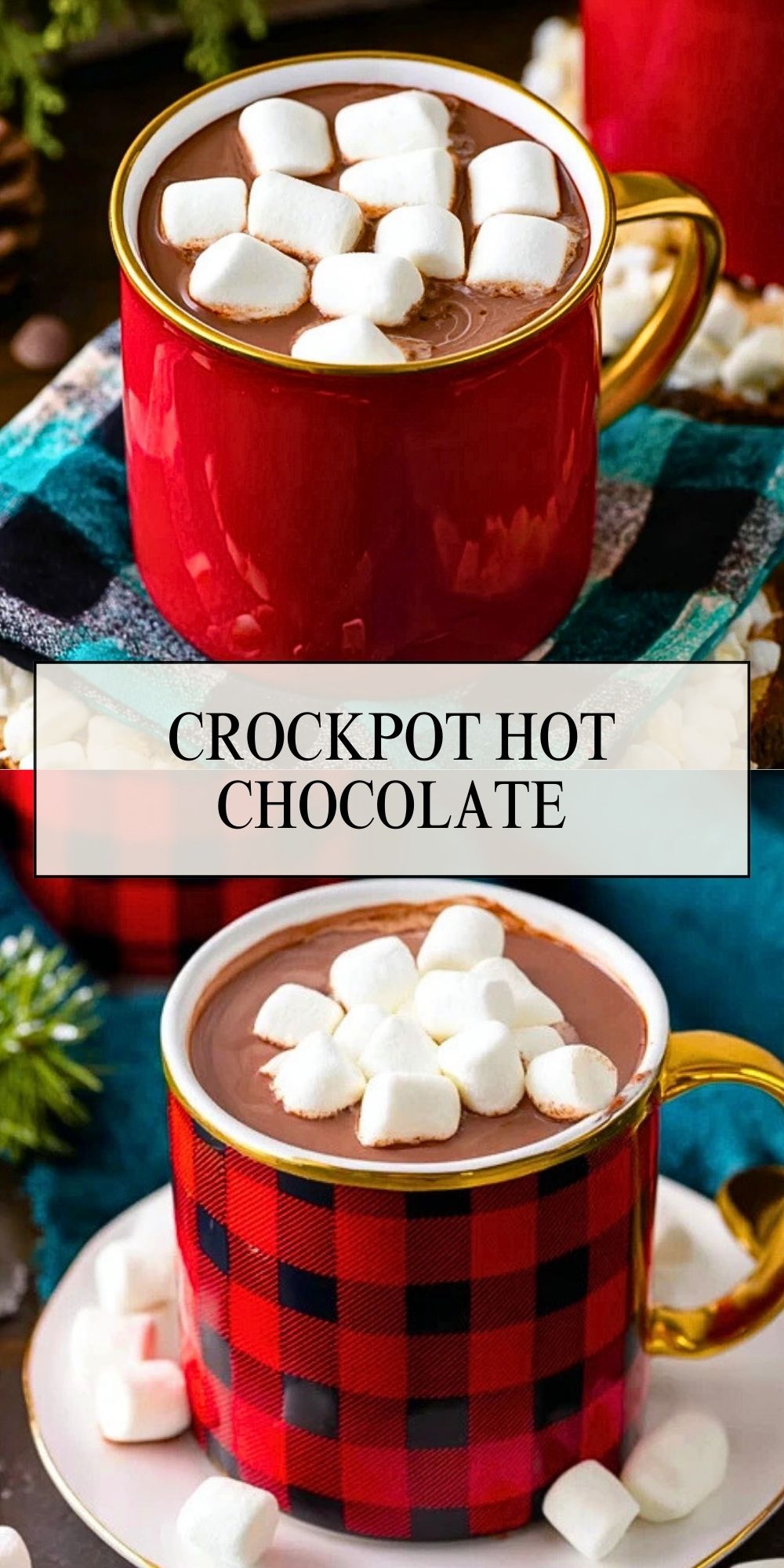 A rich, creamy crockpot hot chocolate made with real chocolate chips, cocoa, and sweetened condensed milk — a cozy winter favorite made effortless.