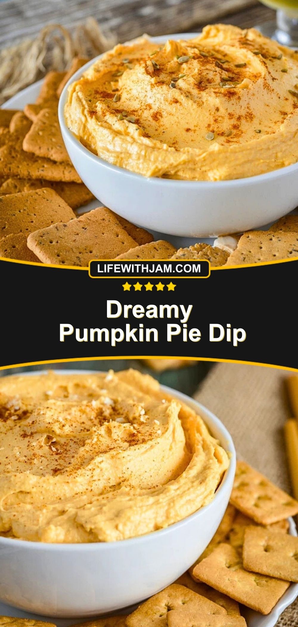 Spoon the dip into a serving bowl and sprinkle the top with a dash of pumpkin pie spice or crushed pecans if desired. Serve with graham crackers, vanilla wafers, apple slices, or gingersnaps.