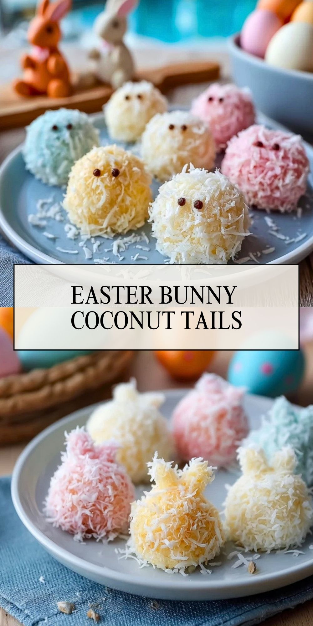 These Easter Bunny Coconut Tails are a quick Easter dessert with a soft, chewy coconut center and a fluffy pastel finish that makes them perfect for spring parties, holiday dessert boards, easy recipe collections, sweet snack ideas, and fun food ideas for family gatherings.