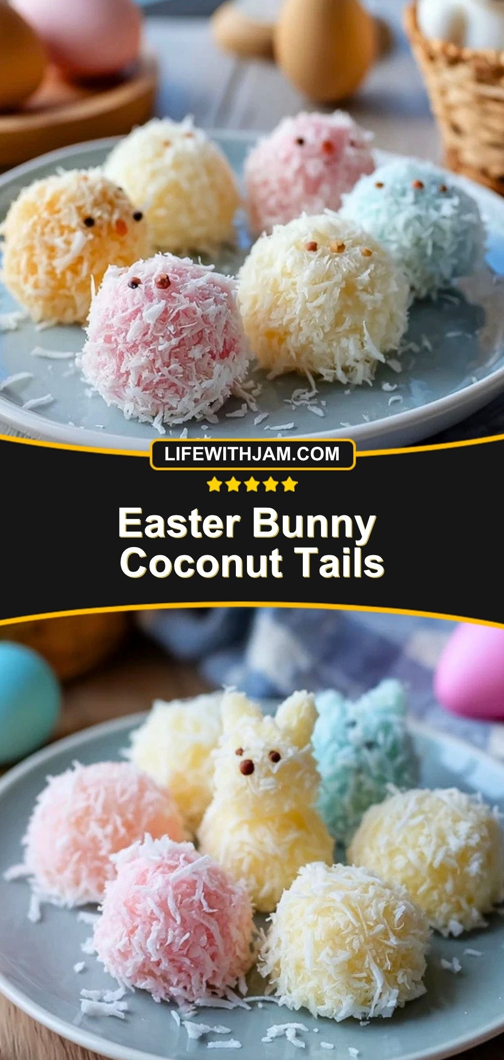 What makes them even better is how simple they are to pull together. A creamy coconut mixture gets tinted in soft spring shades, rolled into little mounds, and finished with extra coconut for that fluffy bunny-tail look. They are sweet, bite-sized, and easy enough to make with kids, which gives them a spot on the list of Easter recipes you will want to revisit every year.