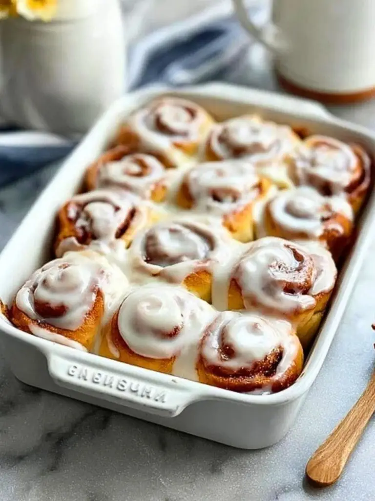 Serve these cinnamon rolls warm, straight from the oven, with the glaze just set and dripping slightly down the sides. Pair them with coffee or a tall glass of cold milk for the coziest combo. They’re also fantastic as part of a brunch spread next to eggs, fruit, or breakfast casseroles.