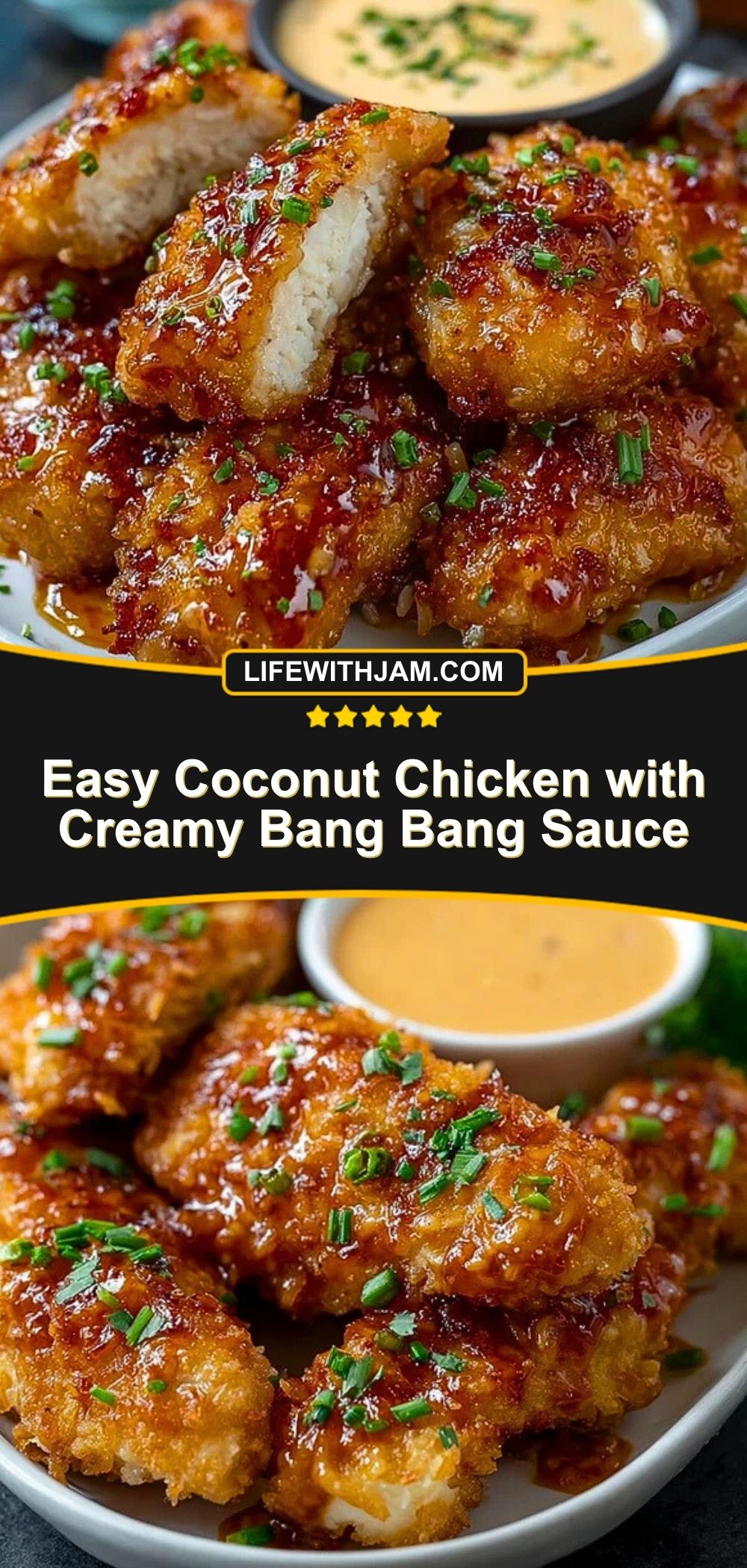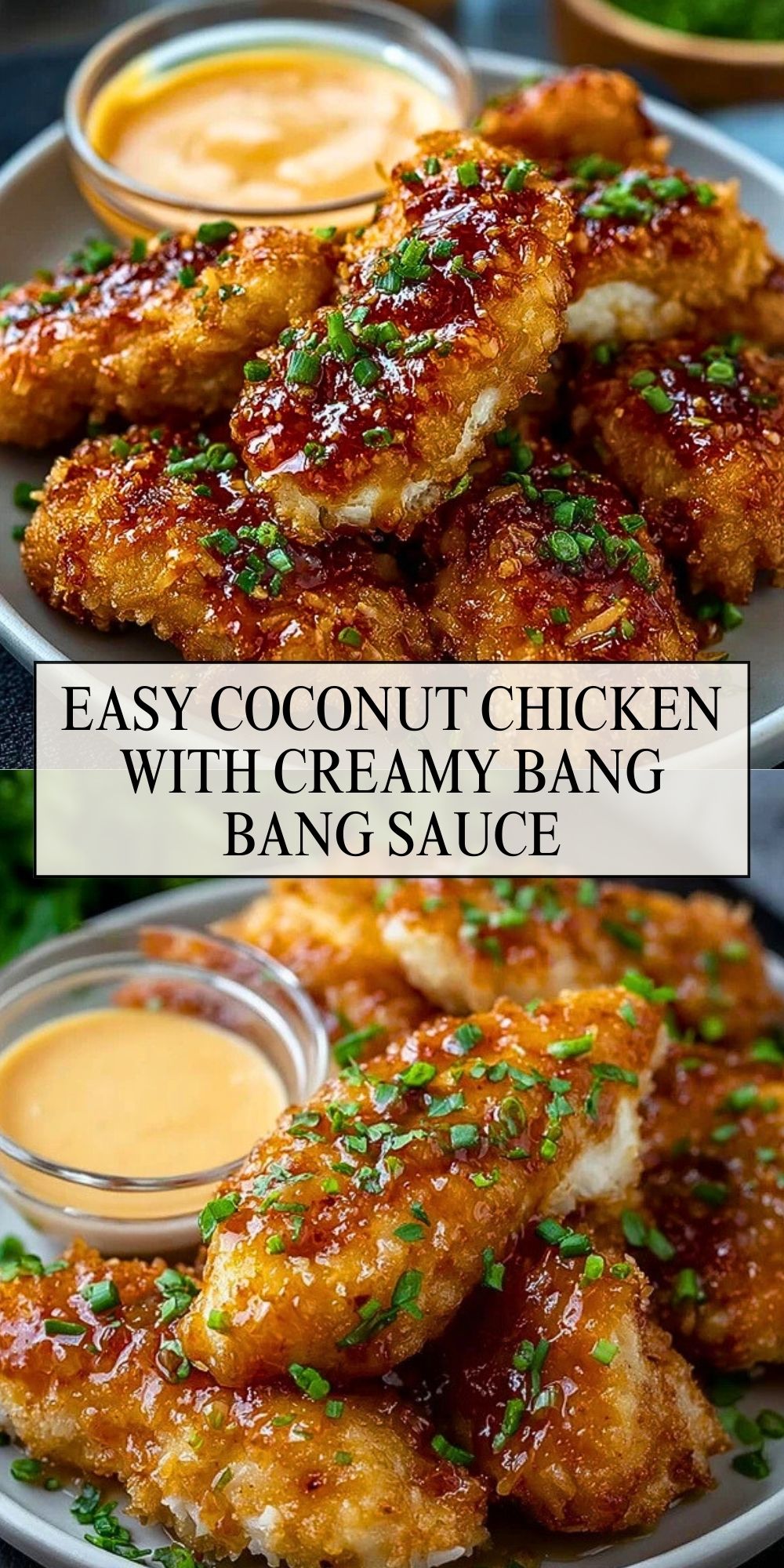 Easy Coconut Chicken with Creamy Bang Bang Sauce is a crispy, golden, sweet-and-savory dish with a tropical crunch. Served with a tangy homemade bang bang sauce, it’s perfect for quick dinners, party platters, or dipping cravings. This comfort meal is as fun to eat as it is to make.