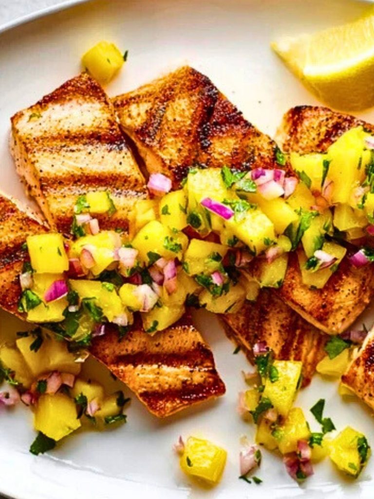Fresh, vibrant, and packed with tropical flavor, this Easy Grilled Salmon with Mango Salsa is a summertime favorite. The salmon is seasoned with smoky spices and grilled to perfection, then topped with a sweet and tangy mango salsa that bursts with color. Perfect for weeknight meals or special occasions, it’s healthy, fast, and absolutely delicious.