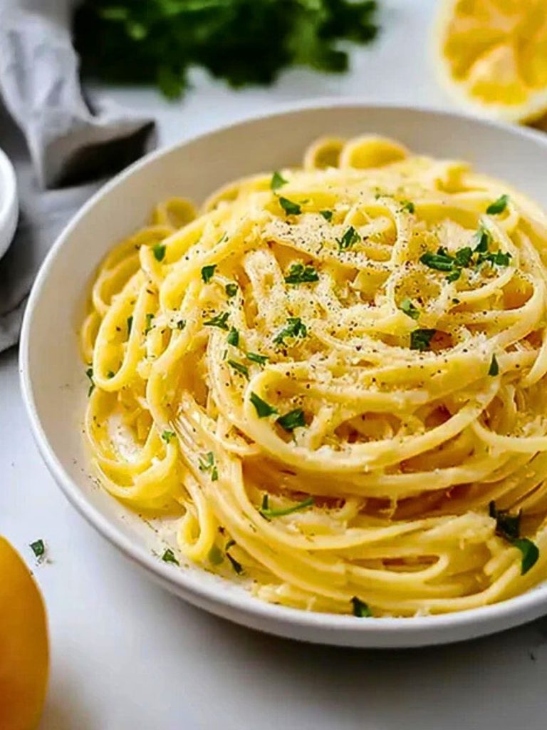 Easy Lemon Butter Linguine is a quick and elegant pasta dish featuring bright lemon, creamy butter, and freshly grated Parmesan. This weeknight-friendly recipe comes together in under 20 minutes and delivers tangy, savory perfection with every bite.