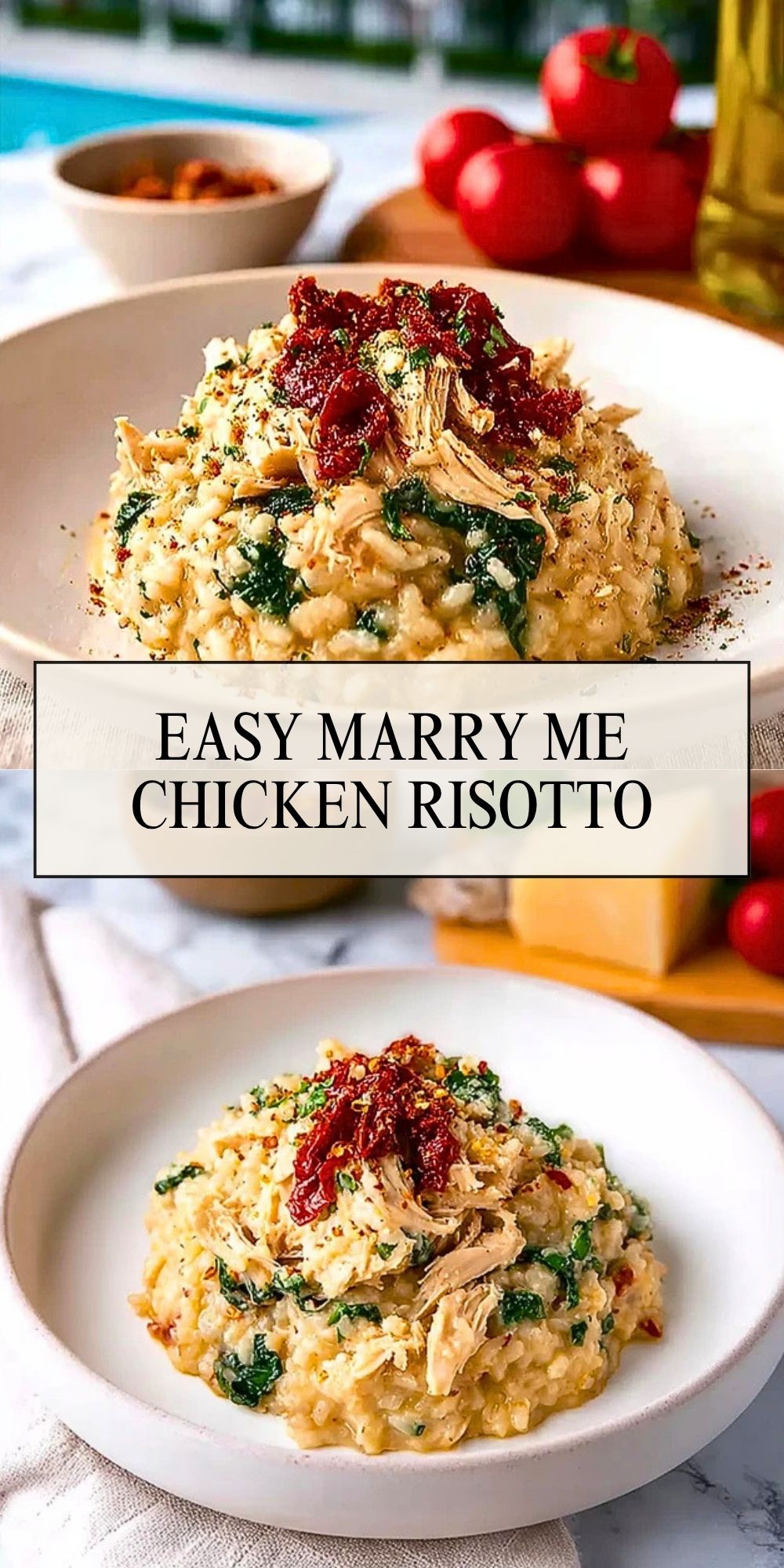 Easy Marry Me Chicken Risotto is a creamy, comforting easy dinner packed with tender chicken, arborio rice, parmesan, spinach, and sun-dried tomatoes. This easy recipe is perfect for weeknight dinner ideas, cozy food ideas, and family meals when you want a rich, satisfying dish that still feels simple enough to make at home.