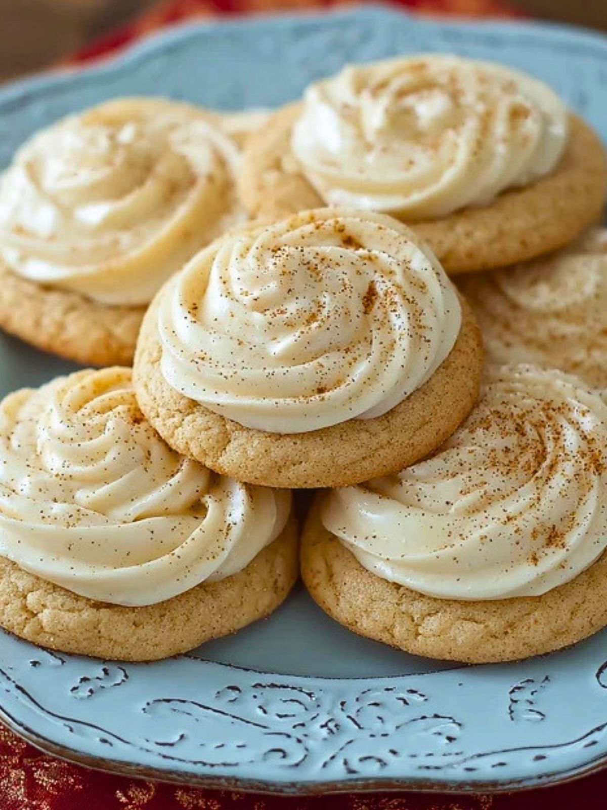 Eggnog Cookies are lovely served chilled or at cool room temperature. They make a beautiful addition to holiday trays, cookie exchanges, and dessert tables because the frosting gives them a polished bakery-style finish.