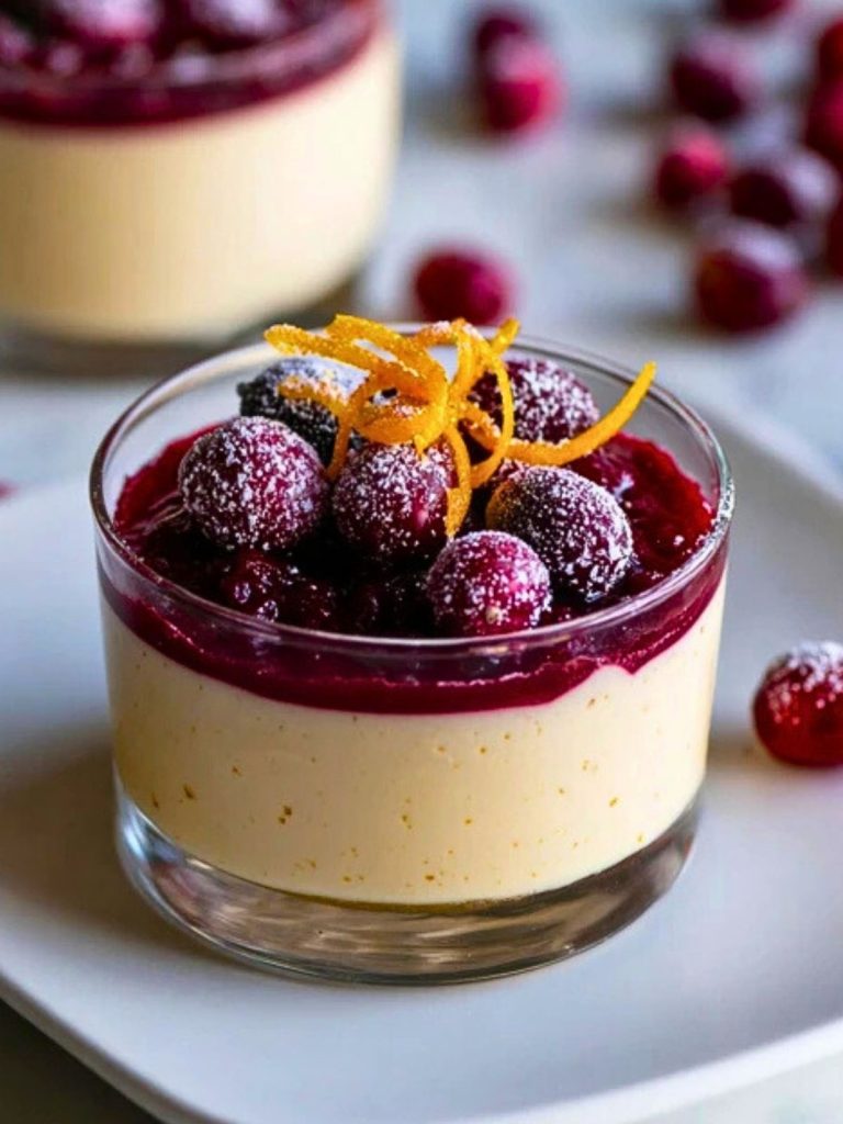 Creamy, dreamy, and just the right amount of festive, Eggnog Panna Cotta with Spiked Cranberry Sauce is your new favorite holiday dessert. This no-bake stunner delivers all the cozy flavors of eggnog, with a silky texture that melts in your mouth. Topped with a jewel-toned cranberry sauce infused with orange zest and a hint of liqueur, it’s a grown-up treat that’s perfect for winter nights.