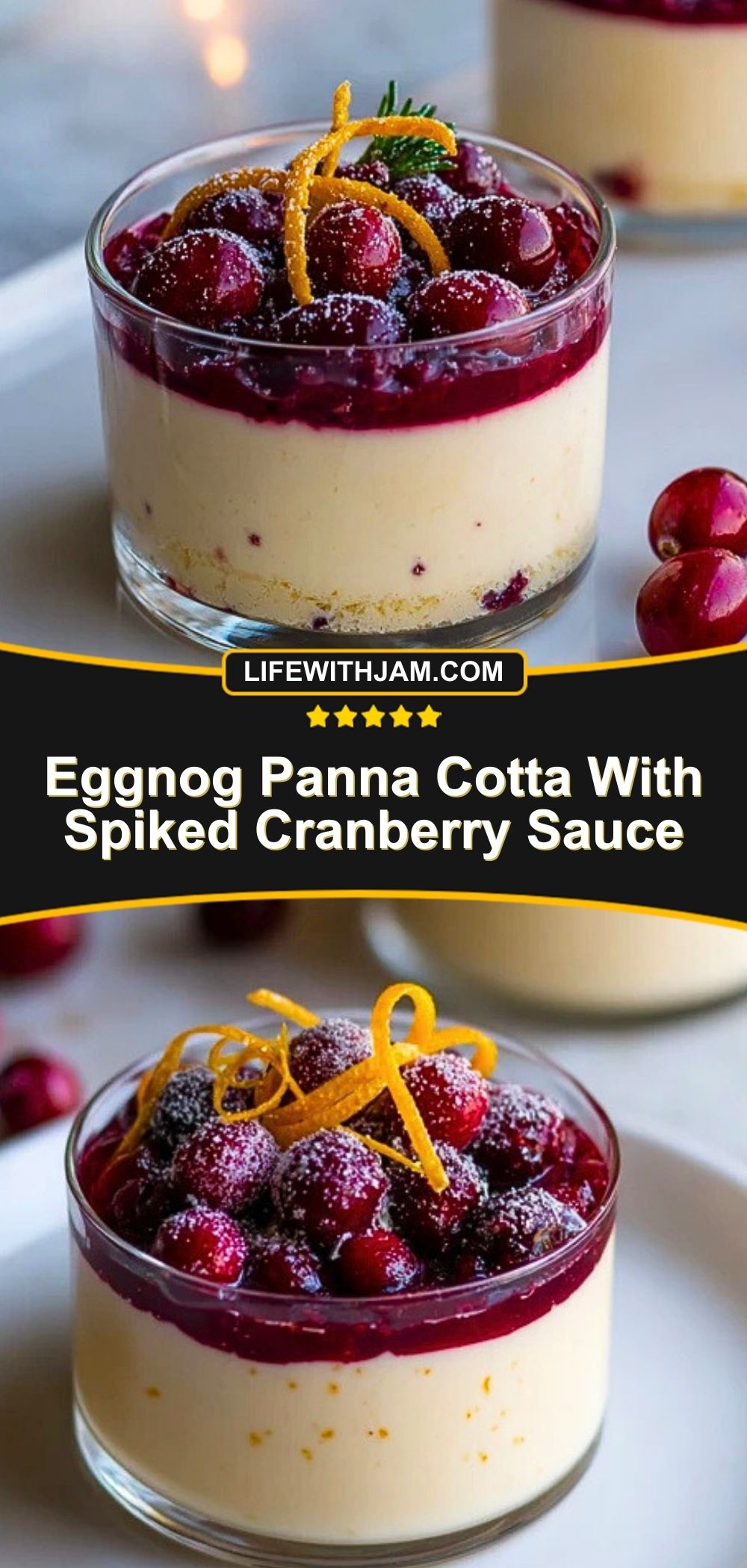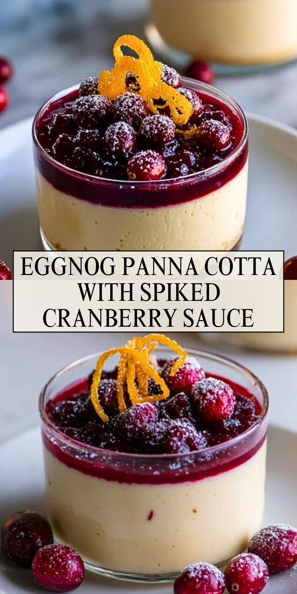 Eggnog Panna Cotta with Spiked Cranberry Sauce