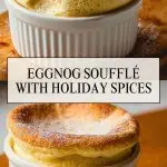 Soufflés are best served fresh out of the oven when they’re puffed and delicate. As they cool, they will naturally deflate, but the flavor and texture remain dreamy. Serve them warm with a spoonful of whipped cream, a light dusting of powdered sugar, or even a splash of warm eggnog sauce if you’re feeling decadent.