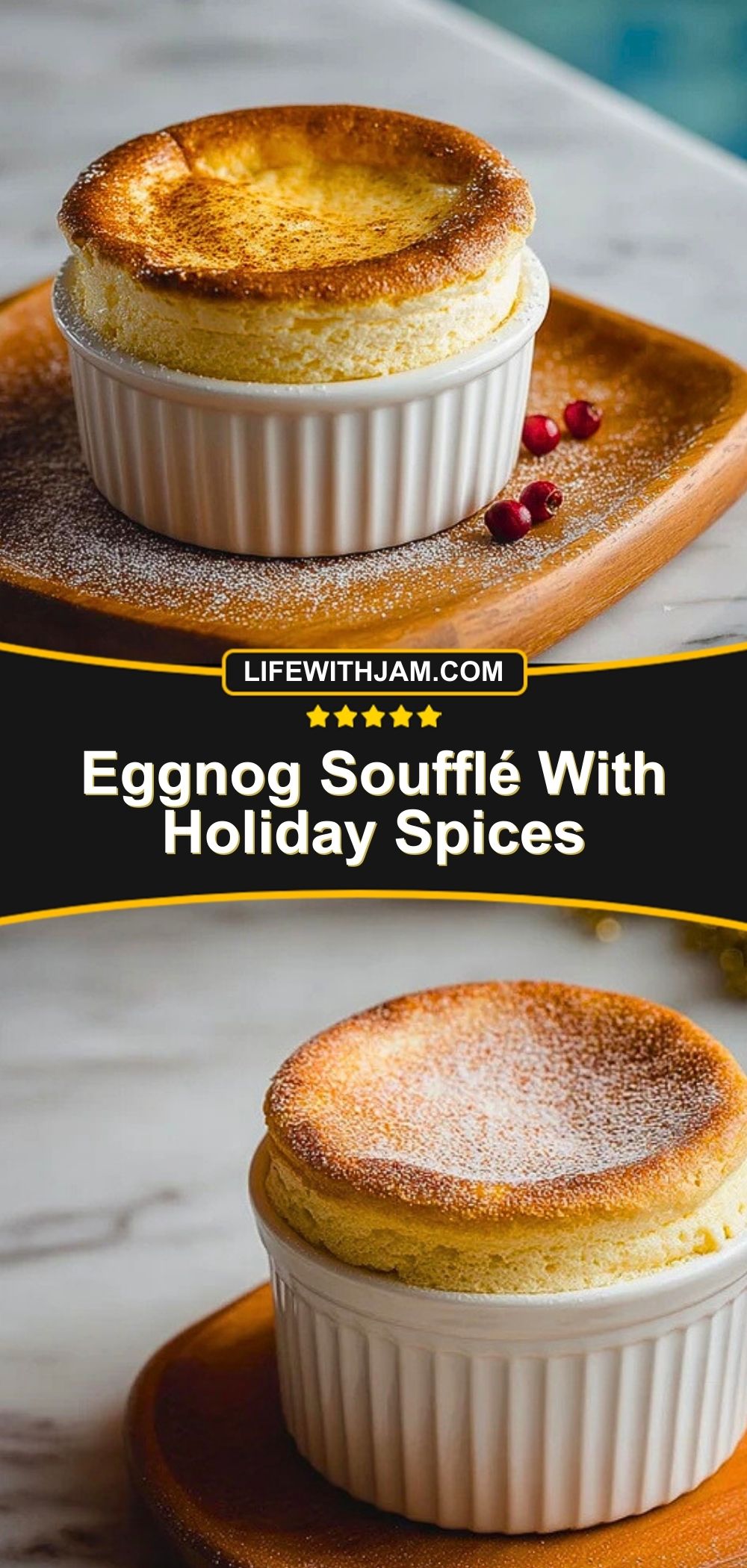 This Eggnog Soufflé With Holiday Spices is the ultimate warm and fluffy holiday dessert. Infused with classic seasonal spices and rich eggnog flavor, this soufflé is perfect for cozy gatherings or impressing guests at your festive table. Light as air with a custardy base, it’s a spoonful of nostalgia baked to golden perfection.