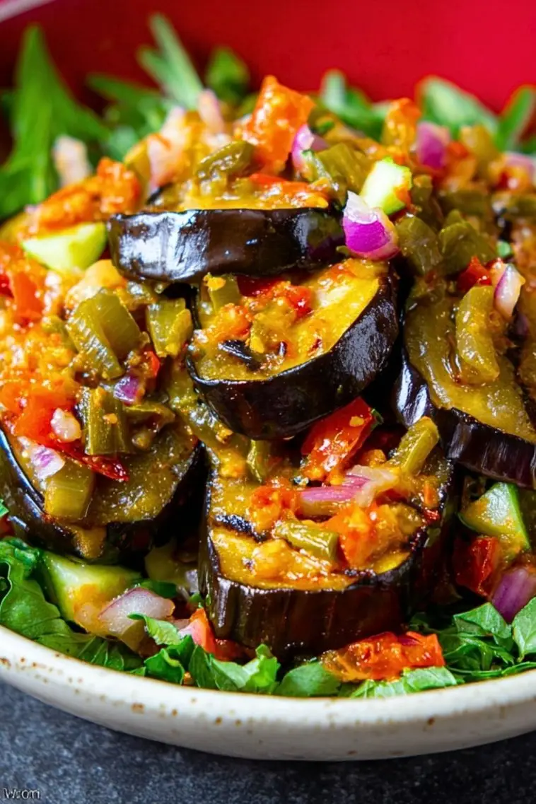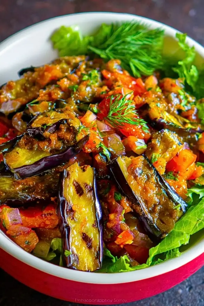 Whether you’re serving it up as part of a mezze spread, a hearty salad course, or even a topping for grilled flatbreads, this eggplant salad is incredibly versatile. It celebrates the bold textures and deep umami of eggplant while staying light and refreshing enough for warm-weather meals.