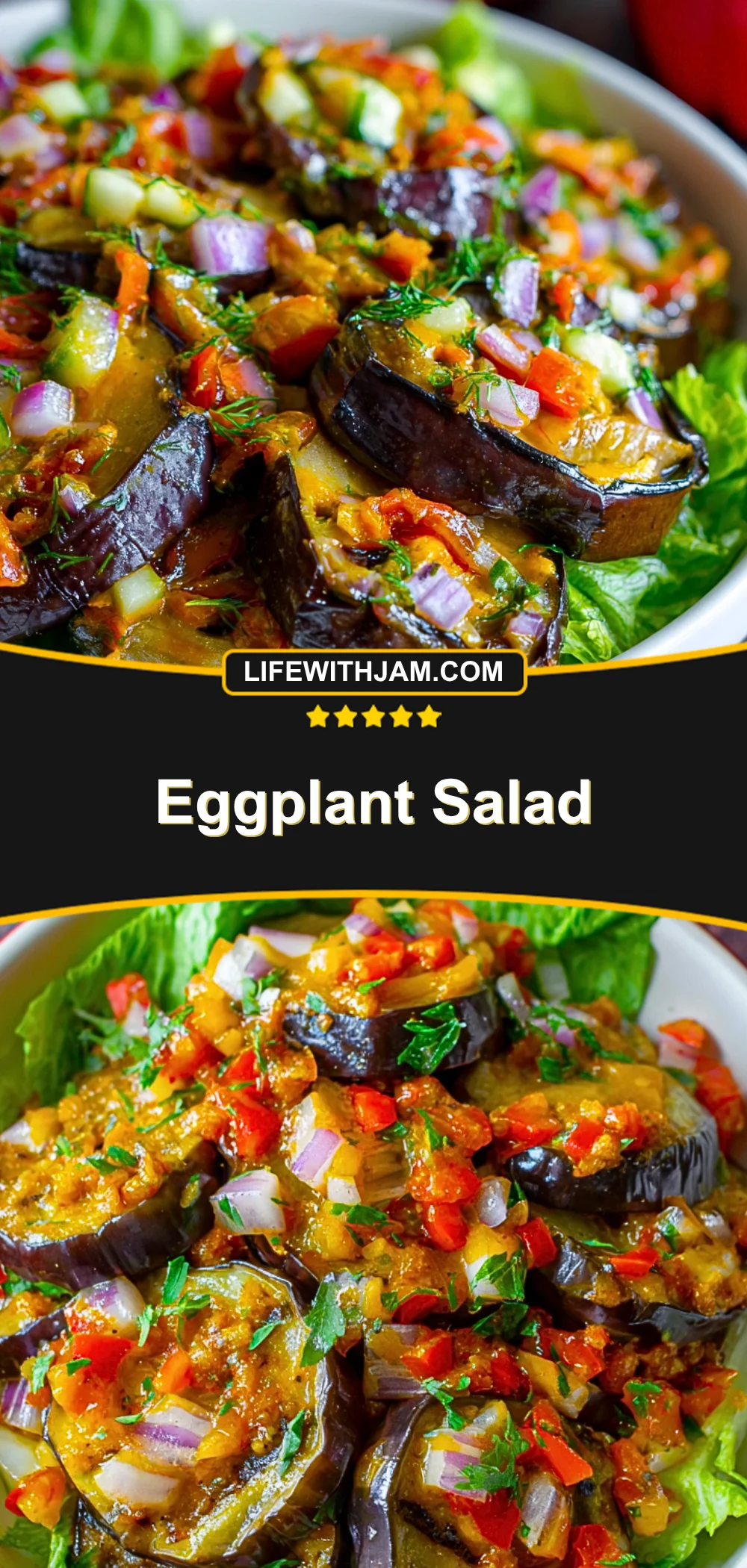 Eggplant Salad can be served warm, room temperature, or cold—it adapts to whatever your menu calls for. For a light lunch, pair it with crusty bread or stuff it into pita pockets. It also works well as a side to grilled meats, fish, or falafel.