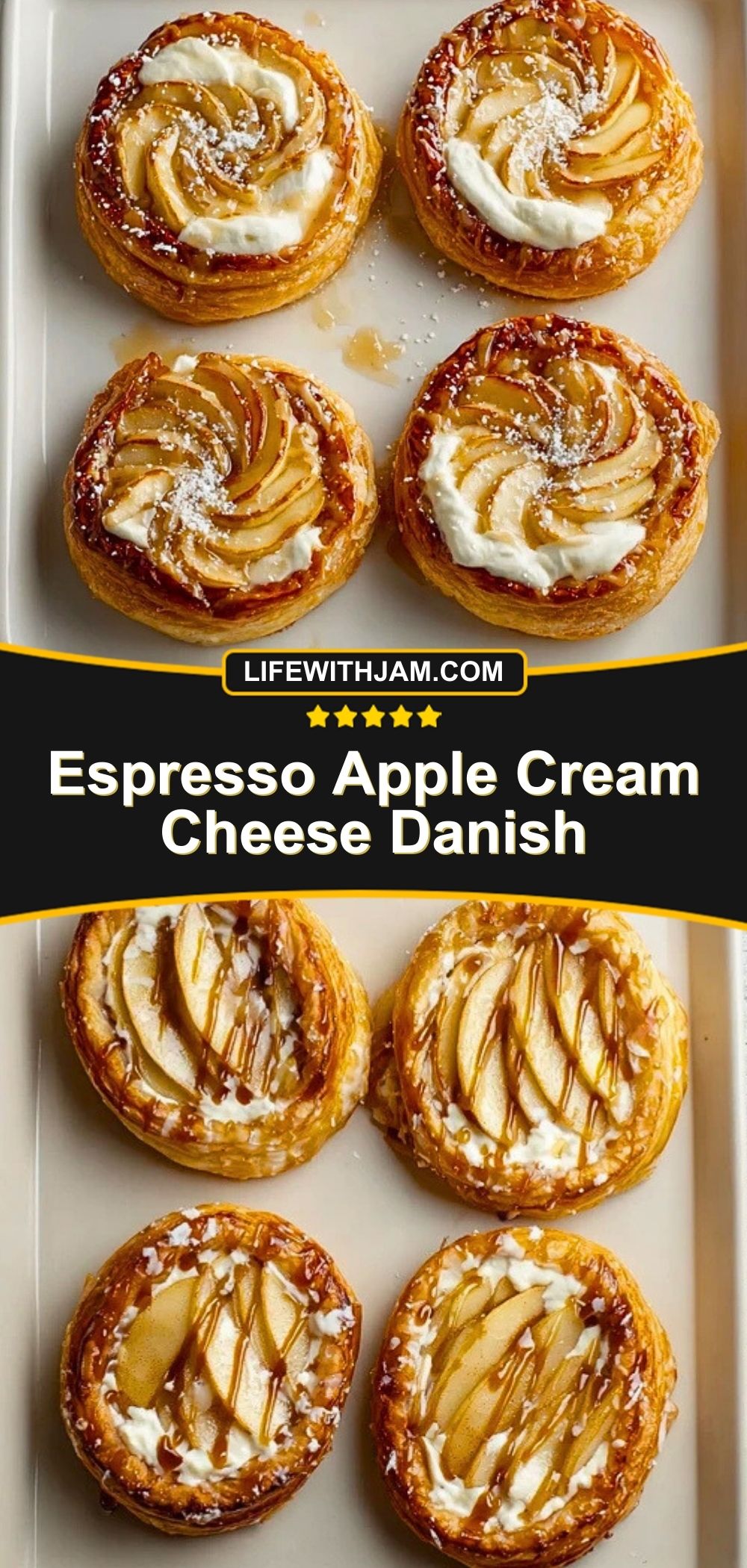 These Espresso Apple Cream Cheese Danishes are a bakery-style breakfast you can make right at home. Featuring buttery puff pastry, tangy cream cheese filling, and apples poached in espresso and cinnamon, they’re topped with caramel drizzle for the perfect finish. Ideal for brunch, dessert, or a cozy coffee pairing.