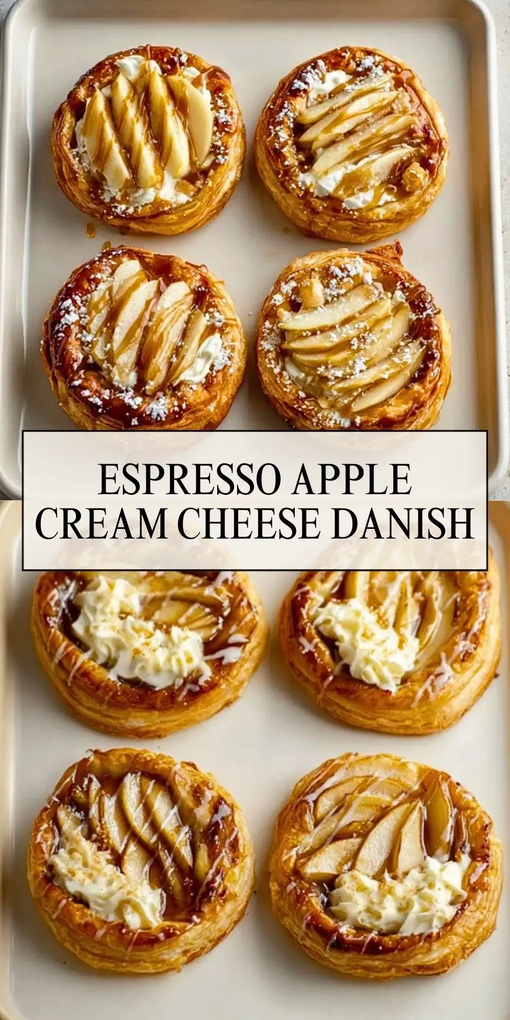 Buttery, flaky pastry meets silky cream cheese, tender espresso-poached apples, and a glossy caramel drizzle in this stunning breakfast treat. These Espresso Apple Cream Cheese Danishes are everything you want from a bakery-style pastry—but baked fresh at home. The apples are gently simmered in espresso, bringing out a rich warmth that balances beautifully with the tangy cream and crisp pastry.